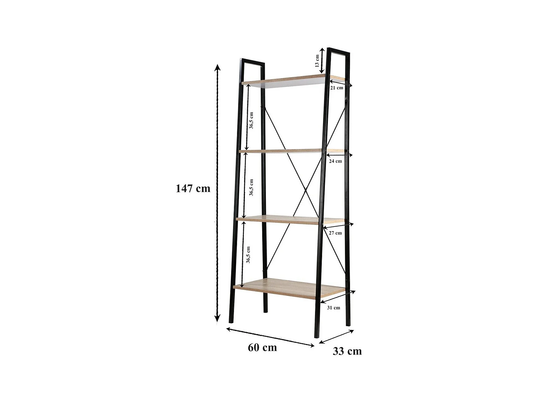 Aspecto de roble de estante de 5 historias con marco negro 80 x 36 x 170 cm