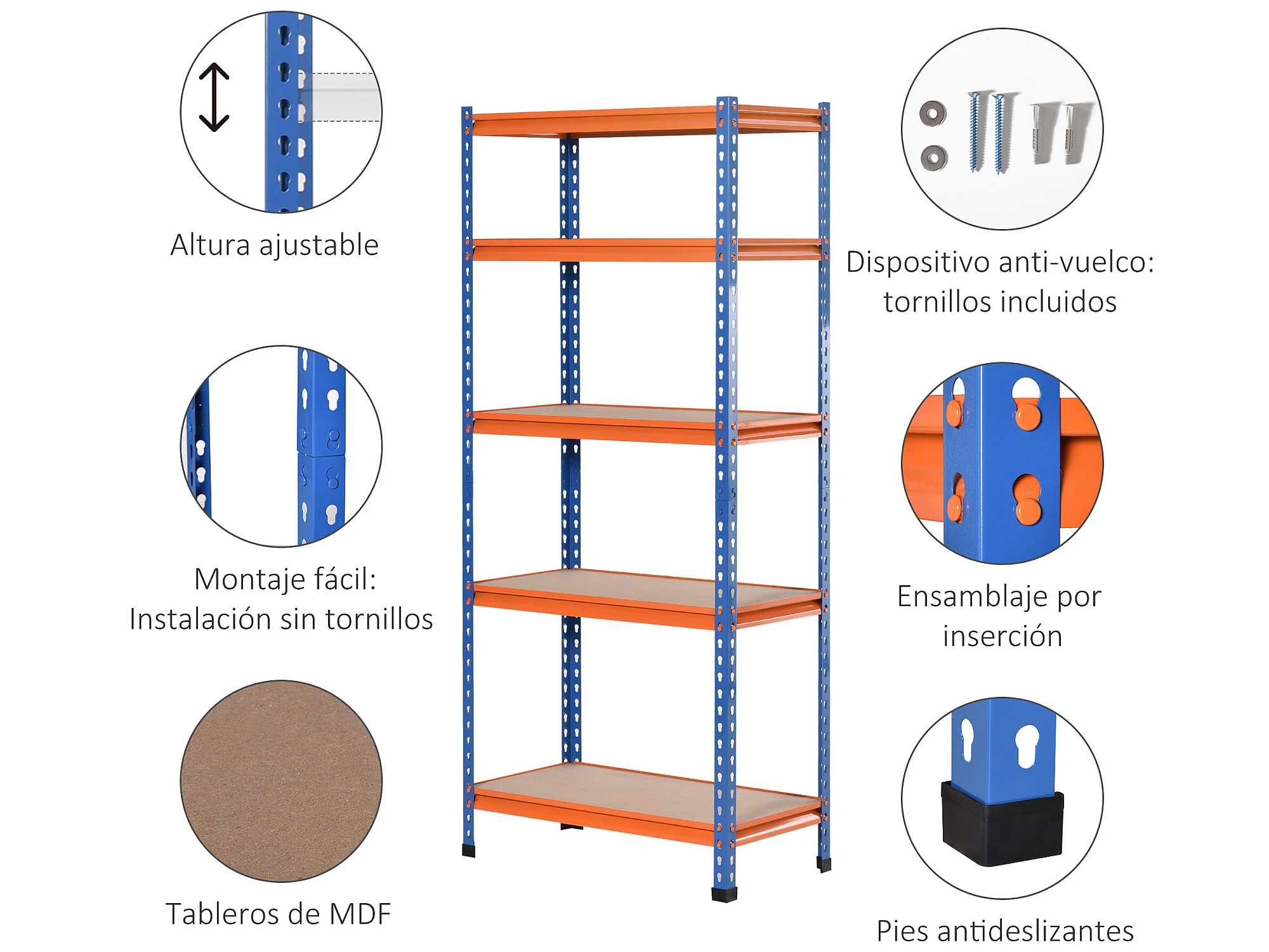 Estantería metálica de almacenaje naranja 80x40x182 cm HOMCOM
