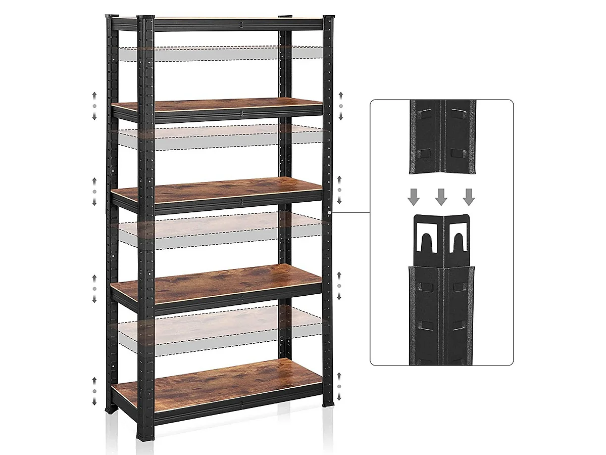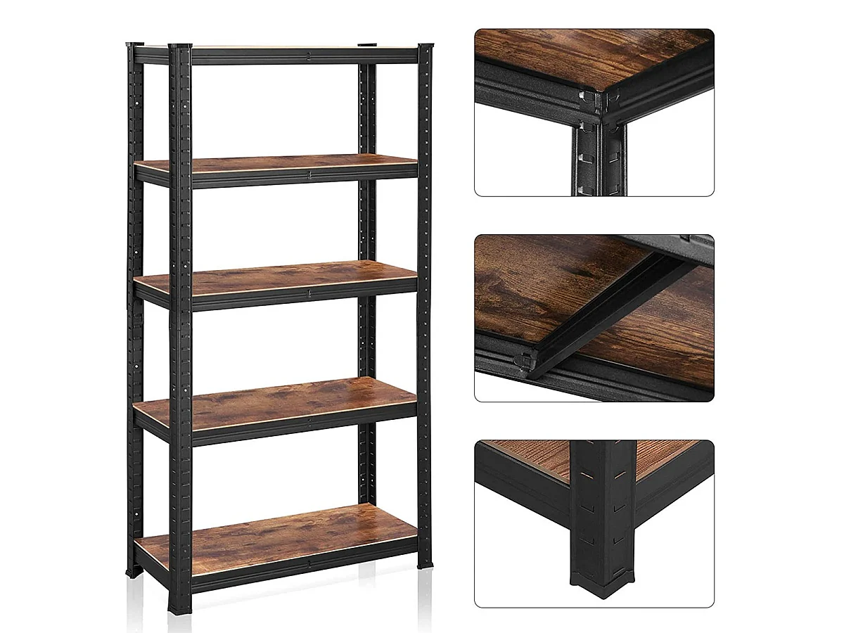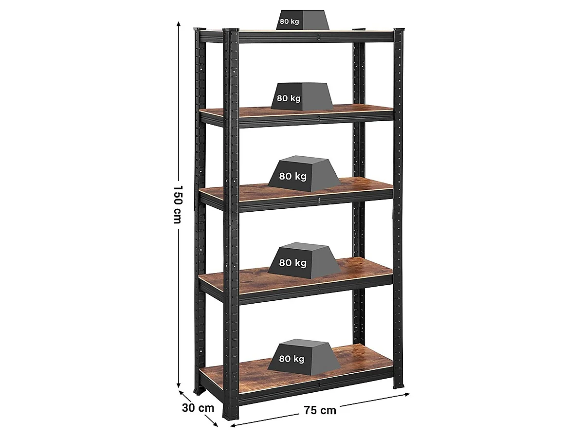 Estantería de almacenamiento industrial de metal negro con niveles ajustables - L75 x H150 cm