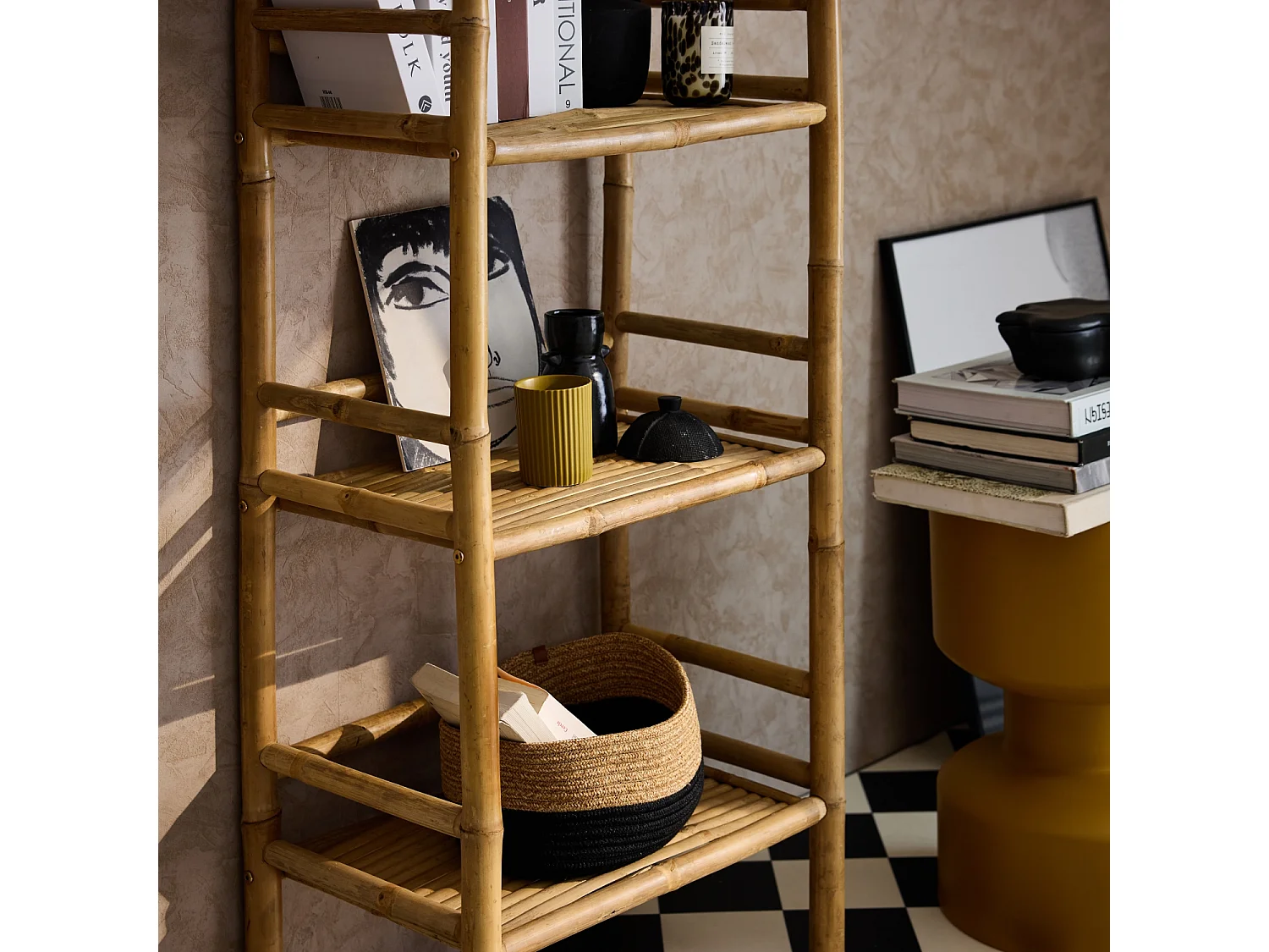 Estantería de almacenaje 5 cestas de tela madera de cedro beige