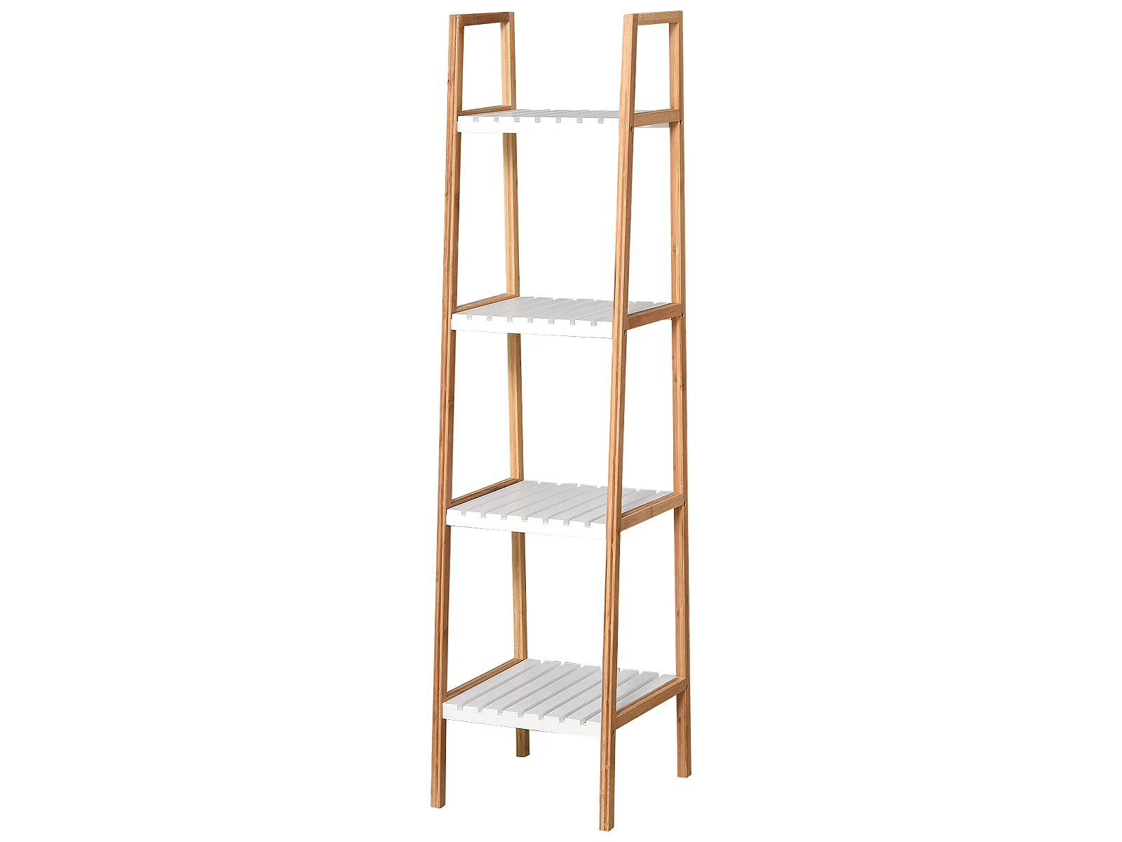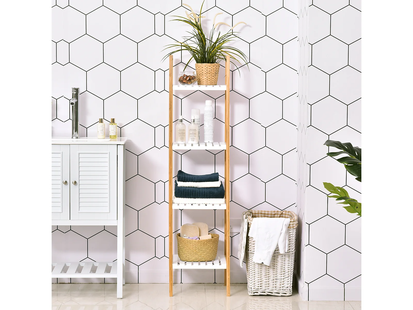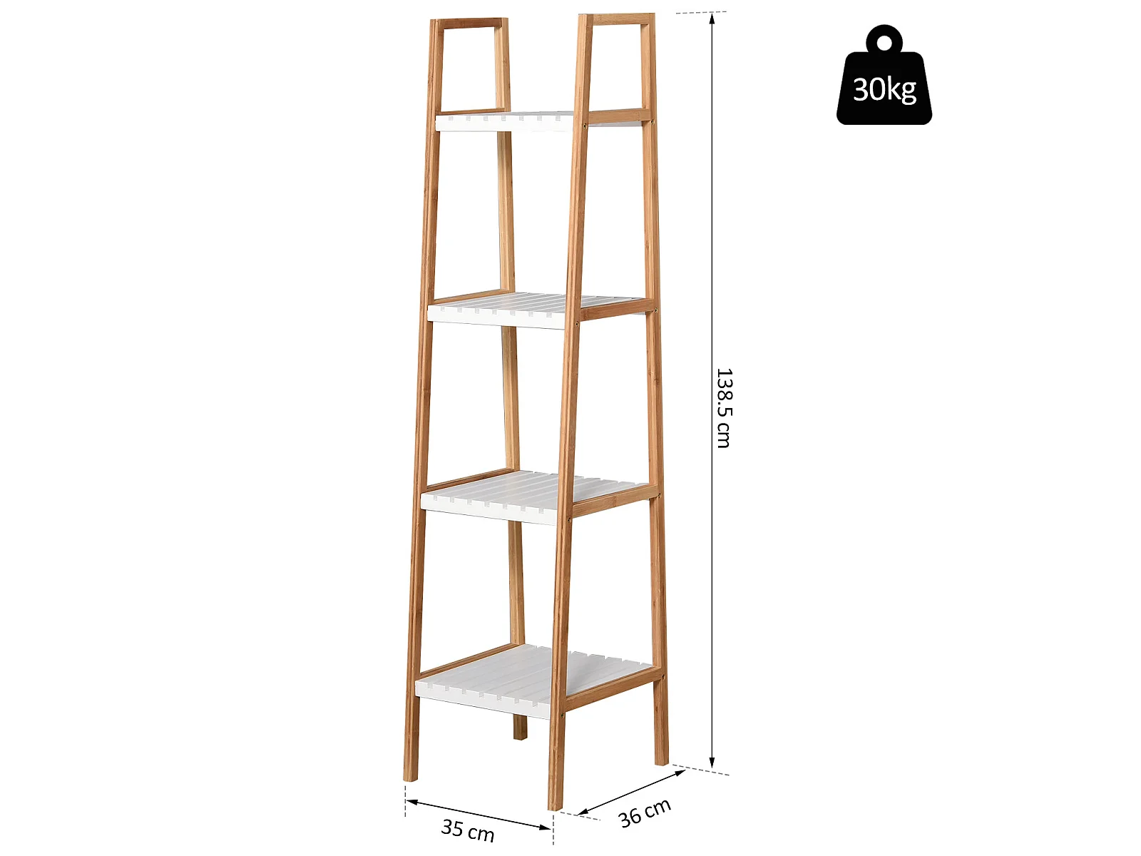 Estantería de baño blanco, bambú natural 35x36x138.5 cm kleankin