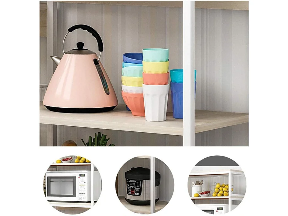 Estantería de Cocina, Estantería para Microondas, Estante Abierto de Pie 2 Mallas metálicas y múltiples Estantes 80x30x142cm, Color Negro y Madera