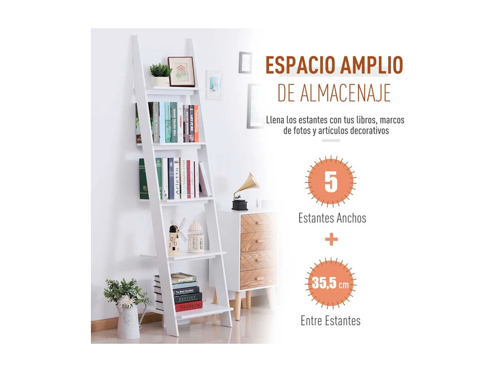 Estantería de escalera blanco 50x40x195 cm HOMCOM