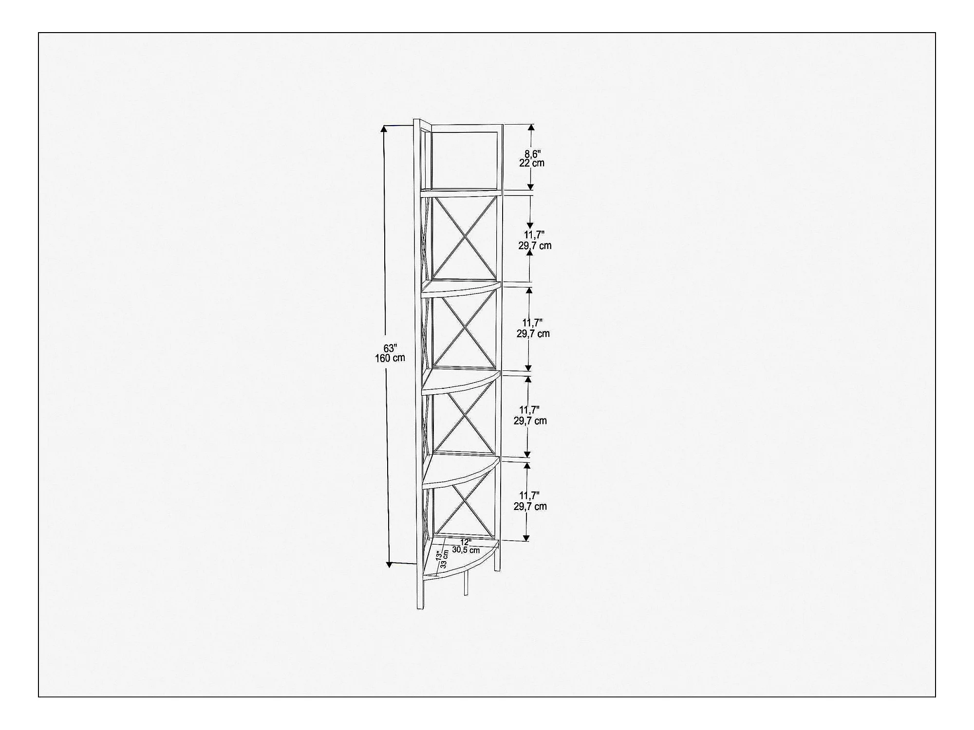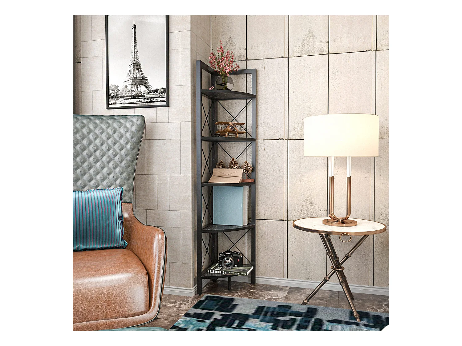 Estantería de esquina 5 estantes negro H160 cm - Remo