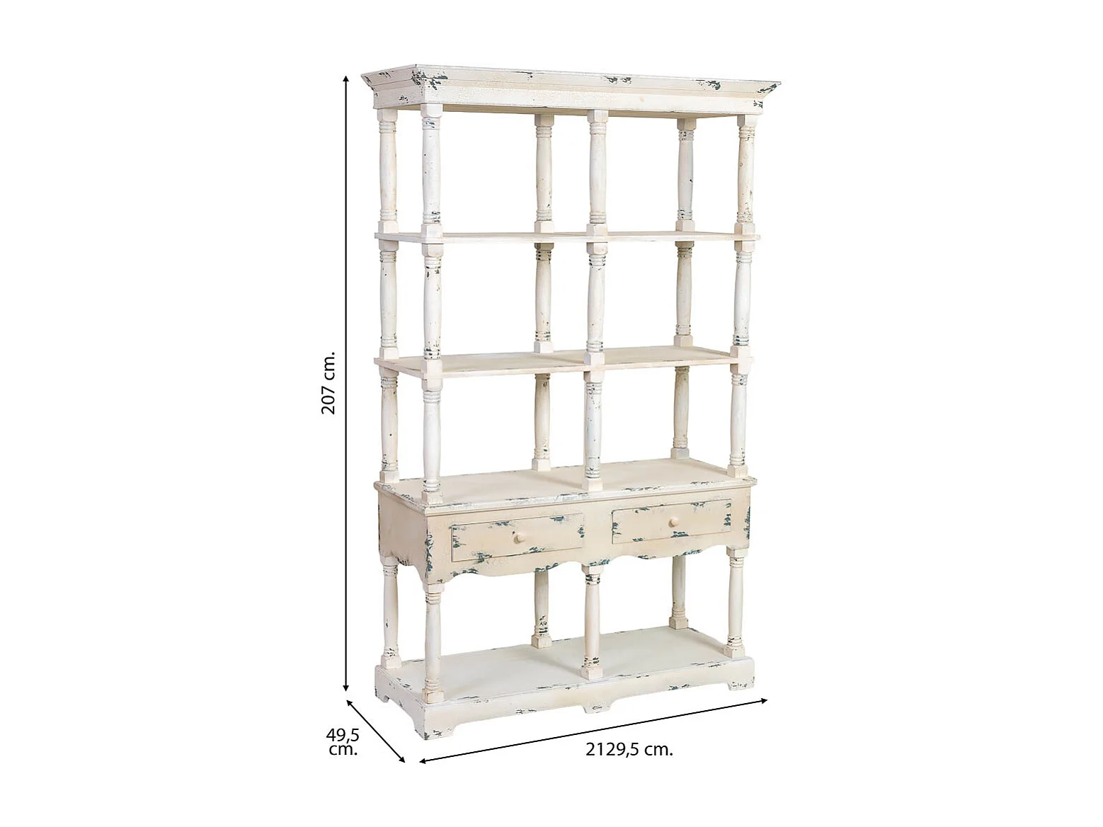 Estantería de madera blanca envejecida 129.5x49.5x207h cm