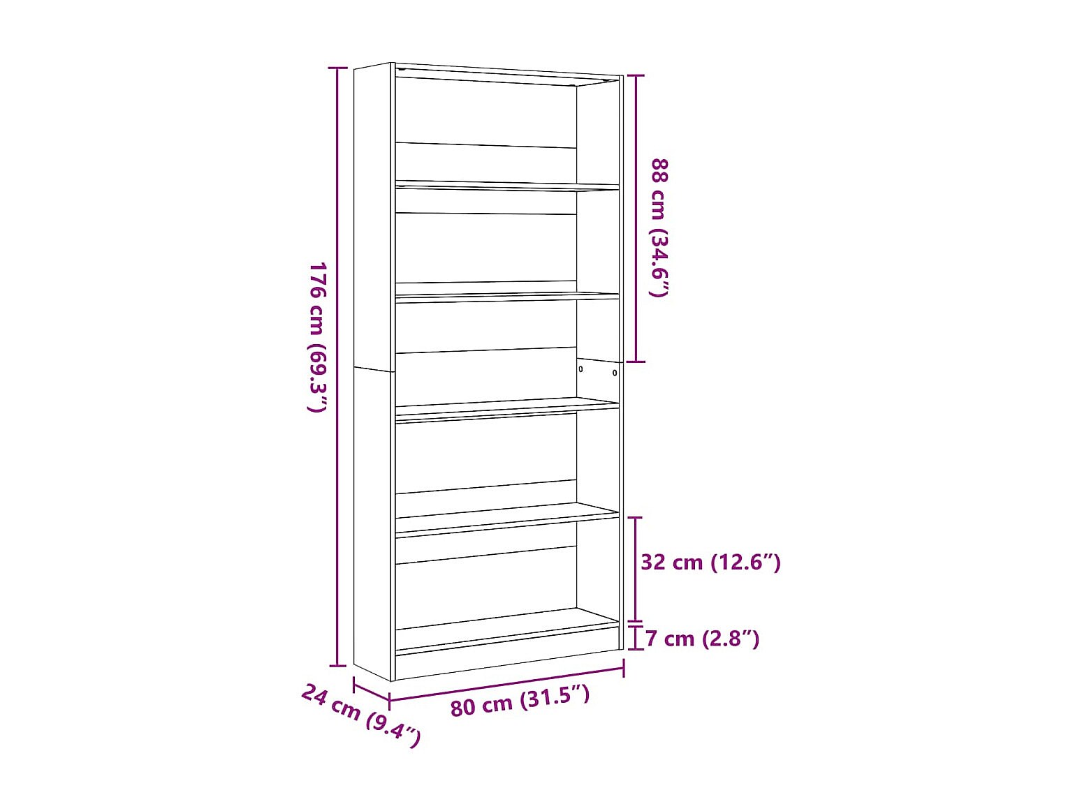 Estantería de madera de ingeniería gris Sonoma 80x24x176 cm