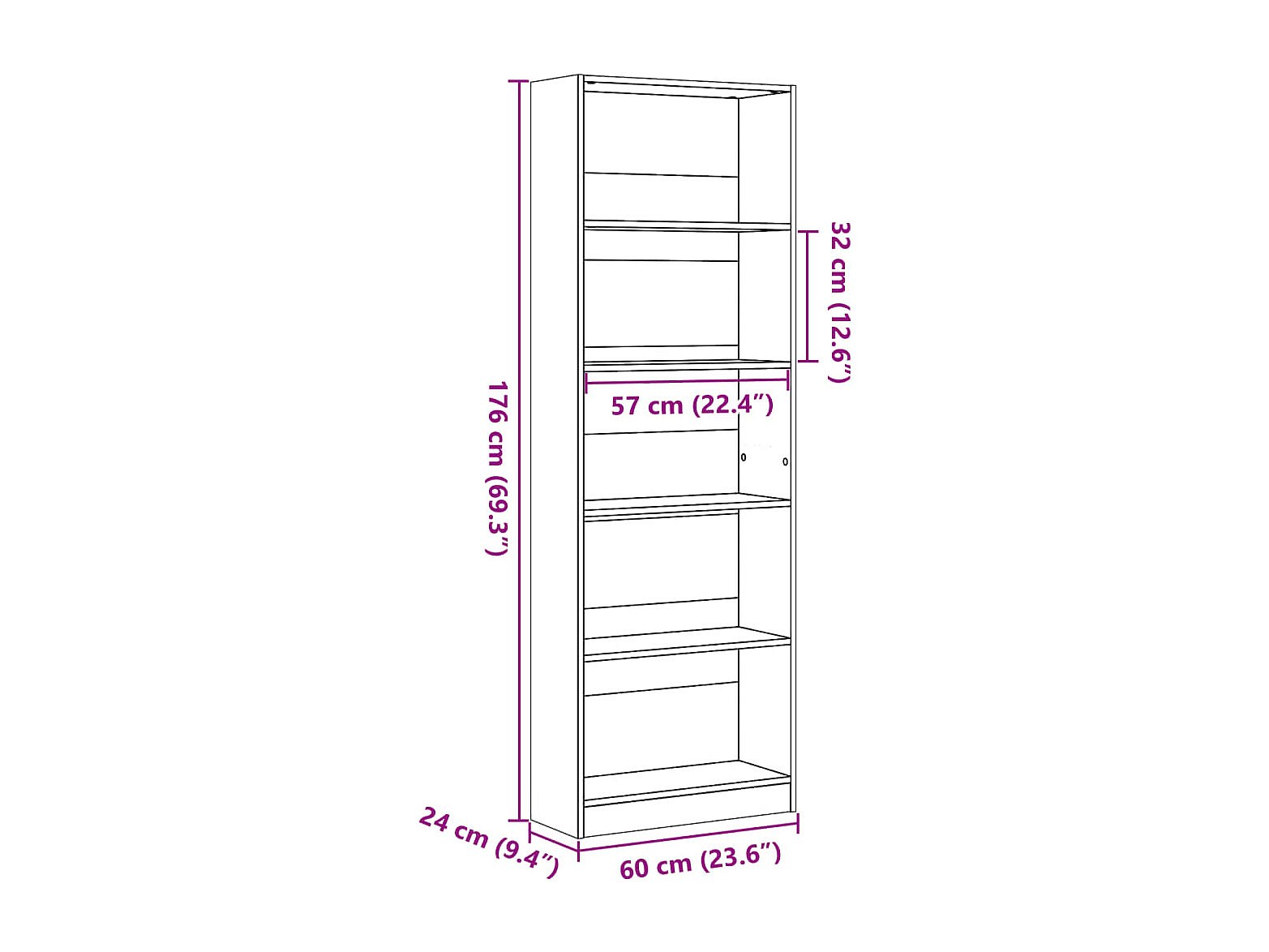 Estantería de madera de ingeniería gris Sonoma 60x24x176 cm