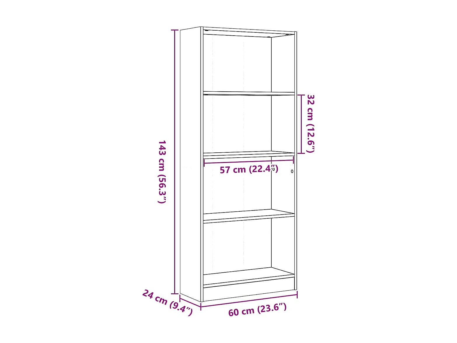 Estantería de 4 niveles de roble negro 80x24x143 cm