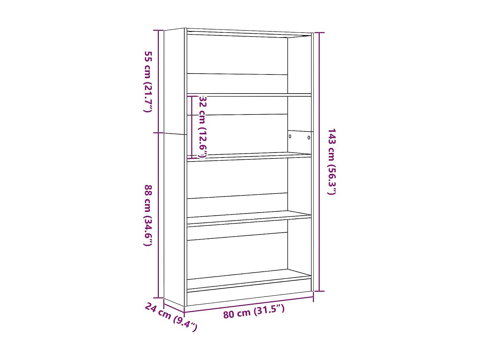 Estantería de 4 niveles de roble negro 80x24x143 cm