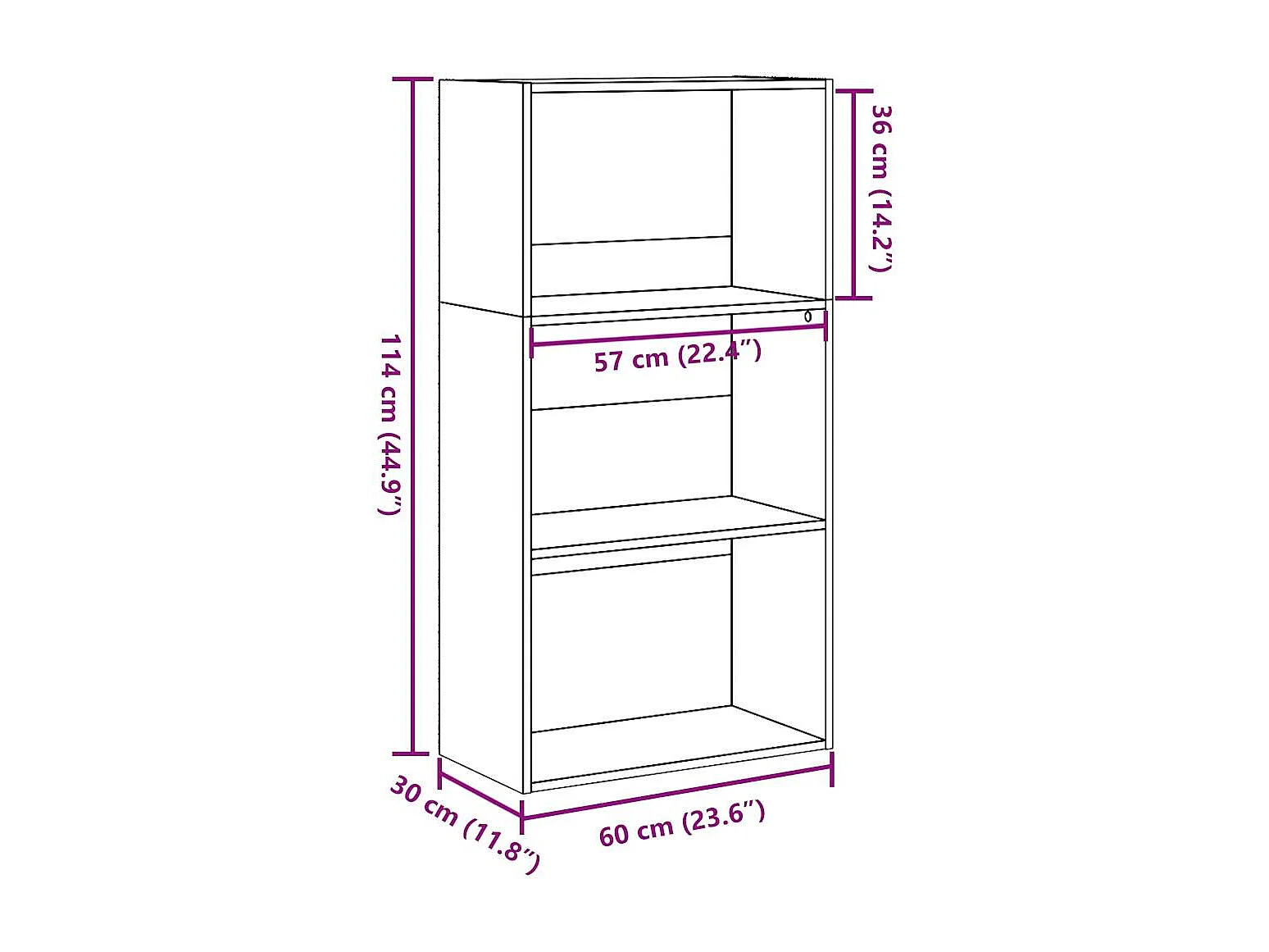 Librería 3 estantes madera ingeniería roble ahumado 60x30x86 cm