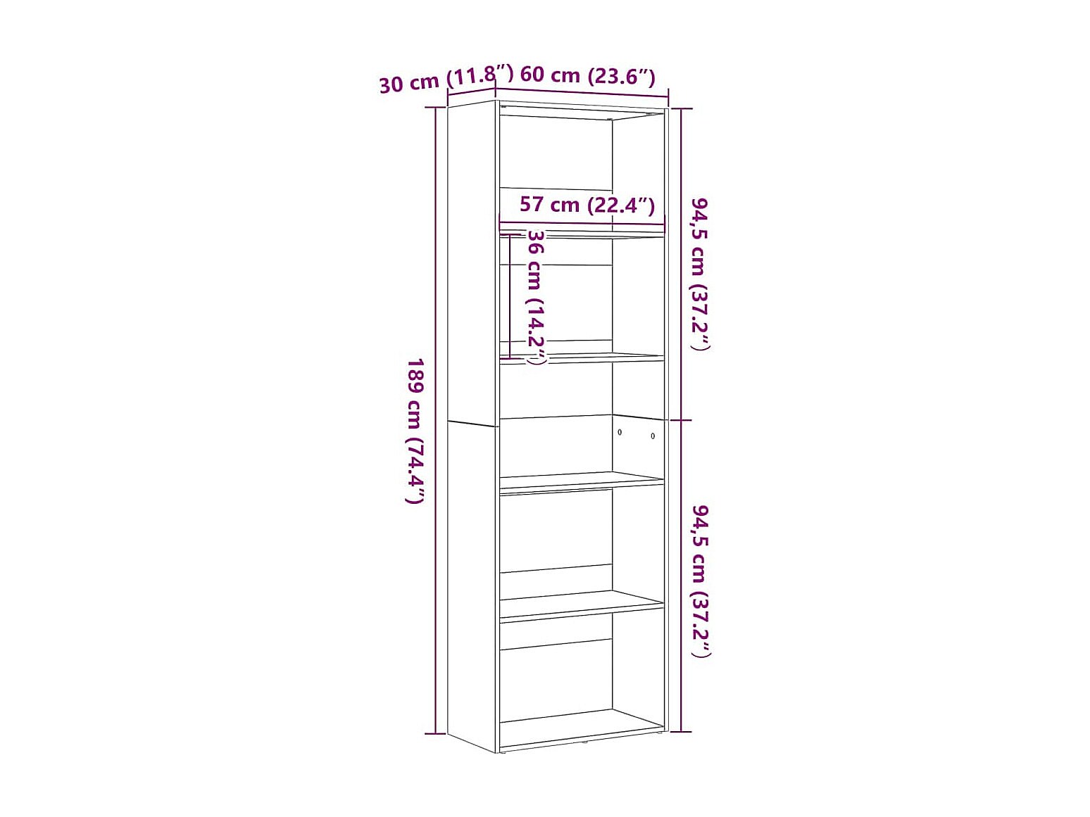 Estantería de madera de roble negro 60x30x189 cm