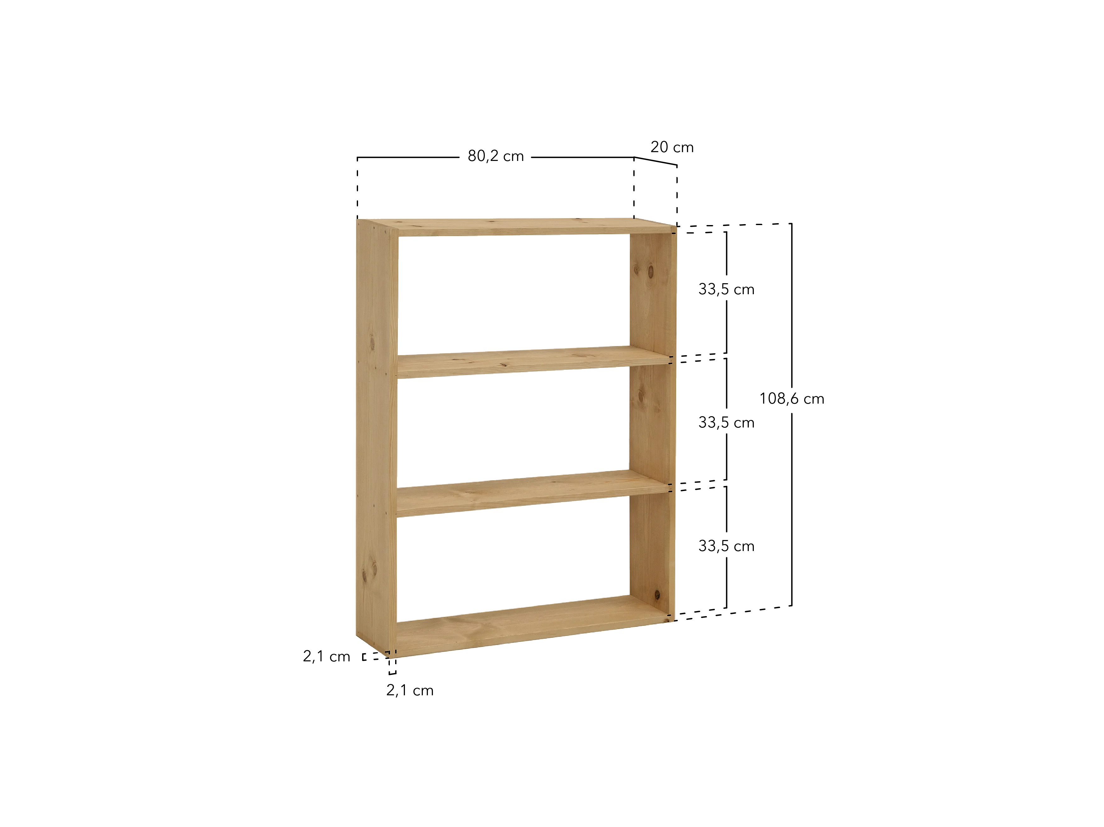 Estantería de madera maciza con 2 estantes natural - SAURA - DECOWOOD