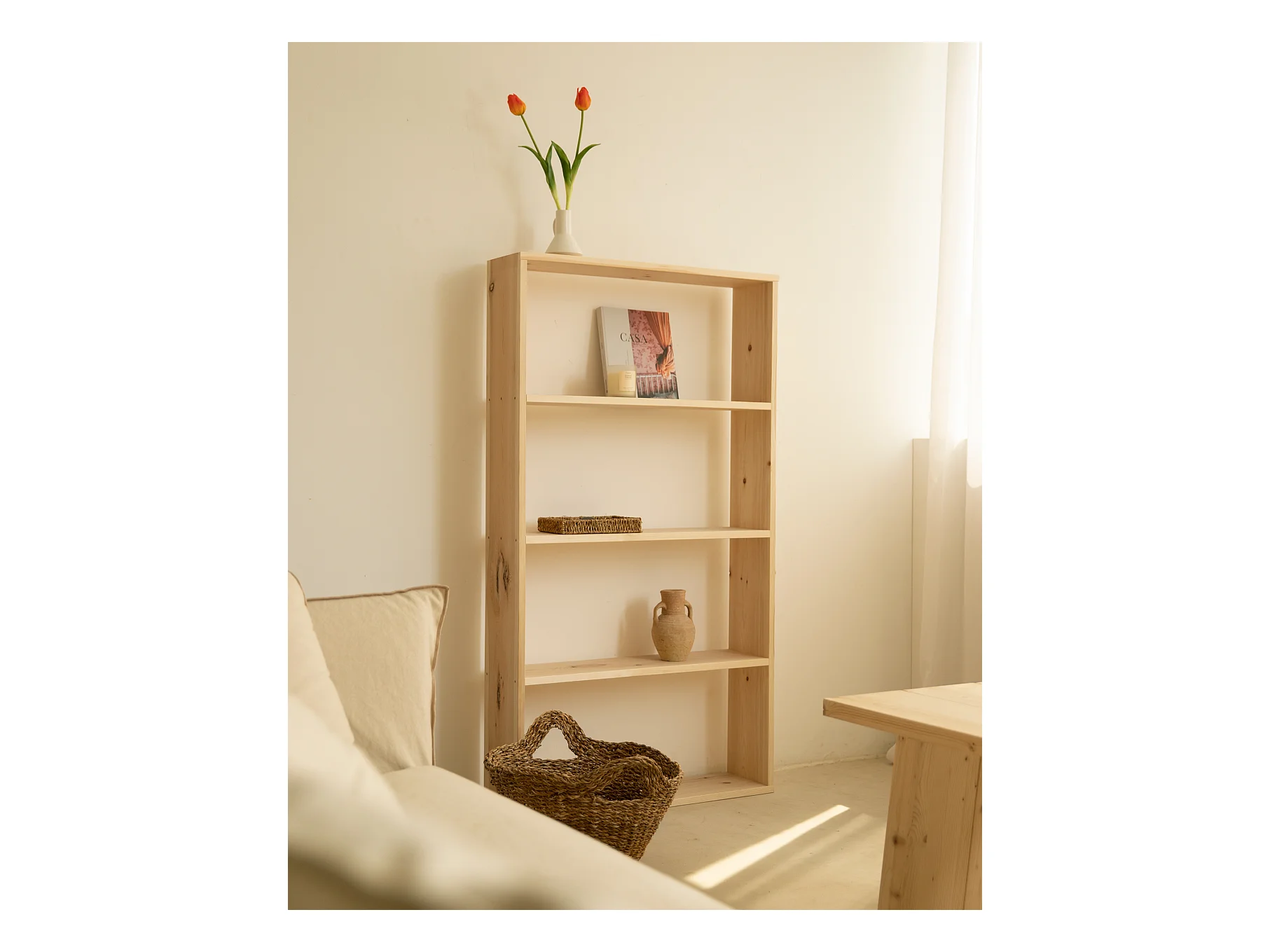 Estantería de madera maciza con 4 estantes natural - SAURA - DECOWOOD