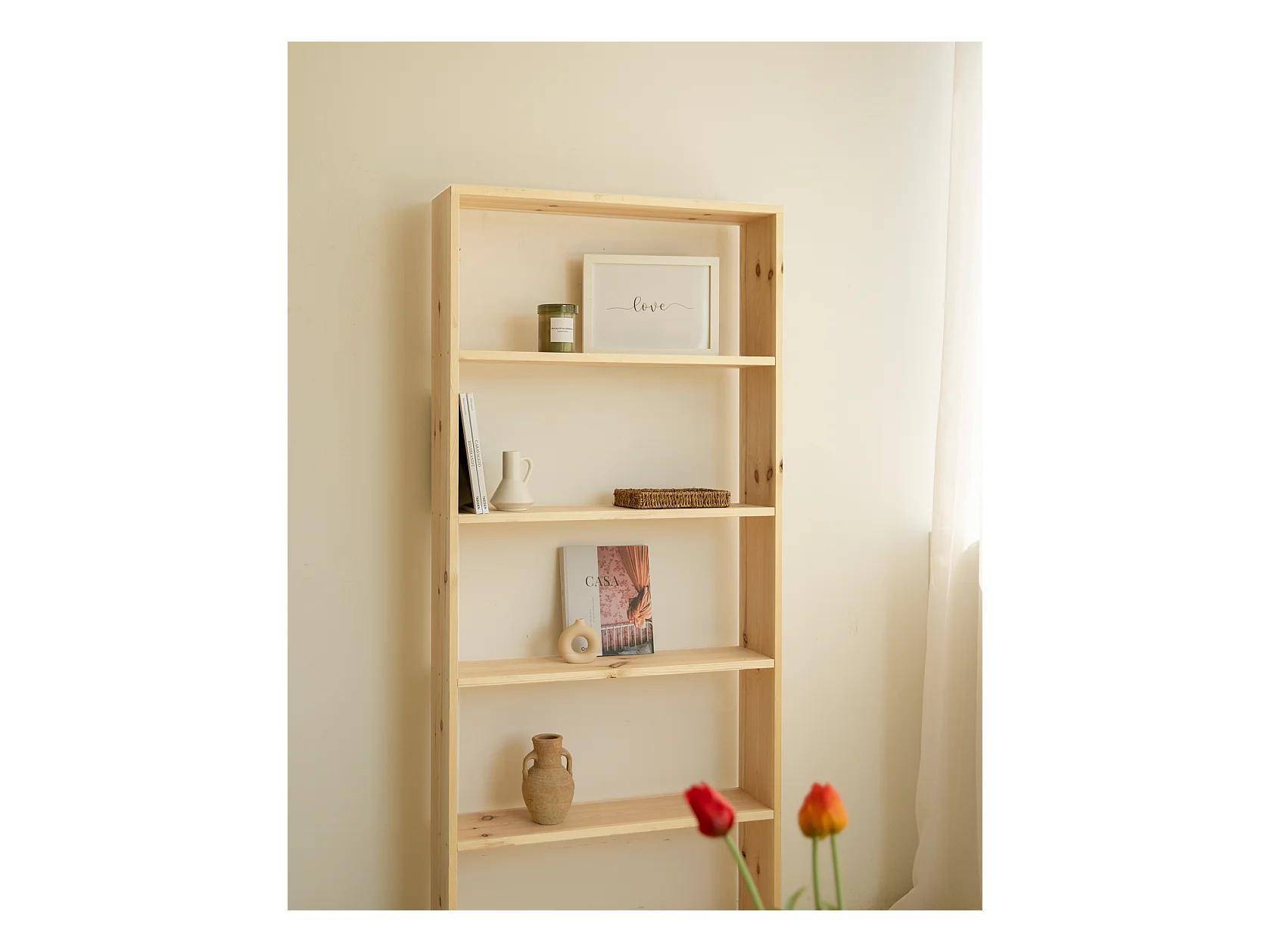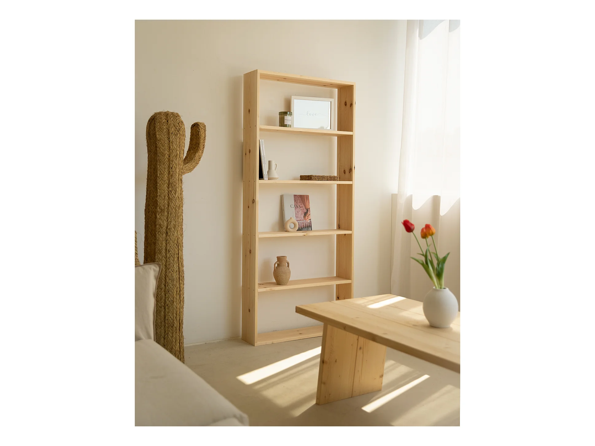 Estantería de madera maciza con 4 estantes natural - SAURA - DECOWOOD
