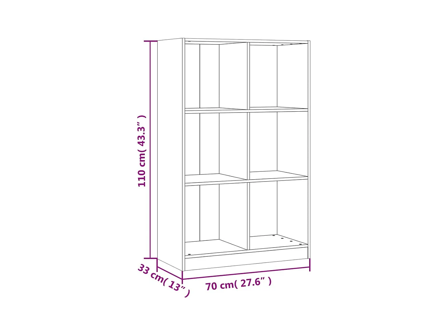 Estantería de madera maciza de pino 70x33x110 cm