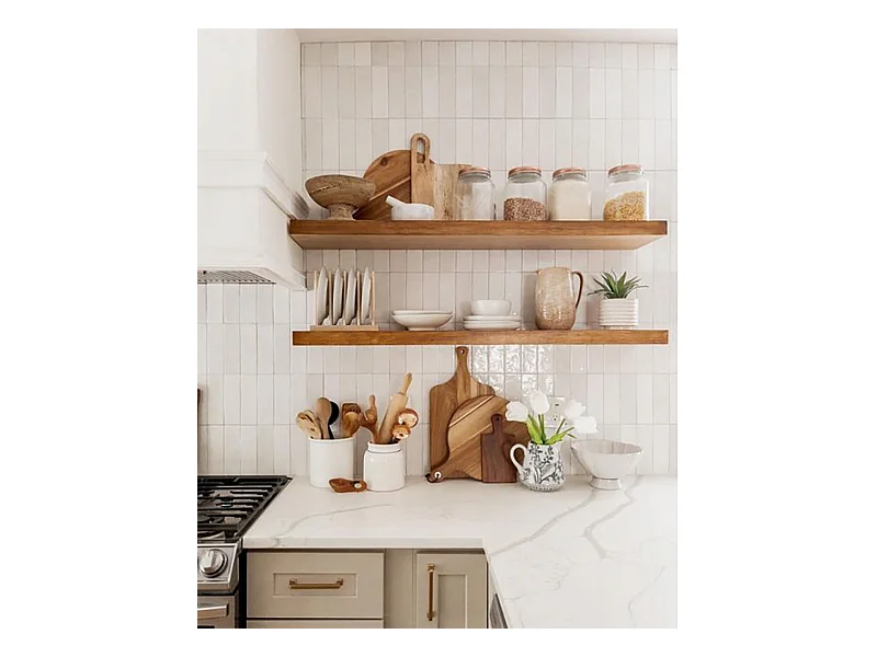 Estantería de madera maciza flotante acabado nogal 180x3,2x20cm - MELVA - DECOWOOD