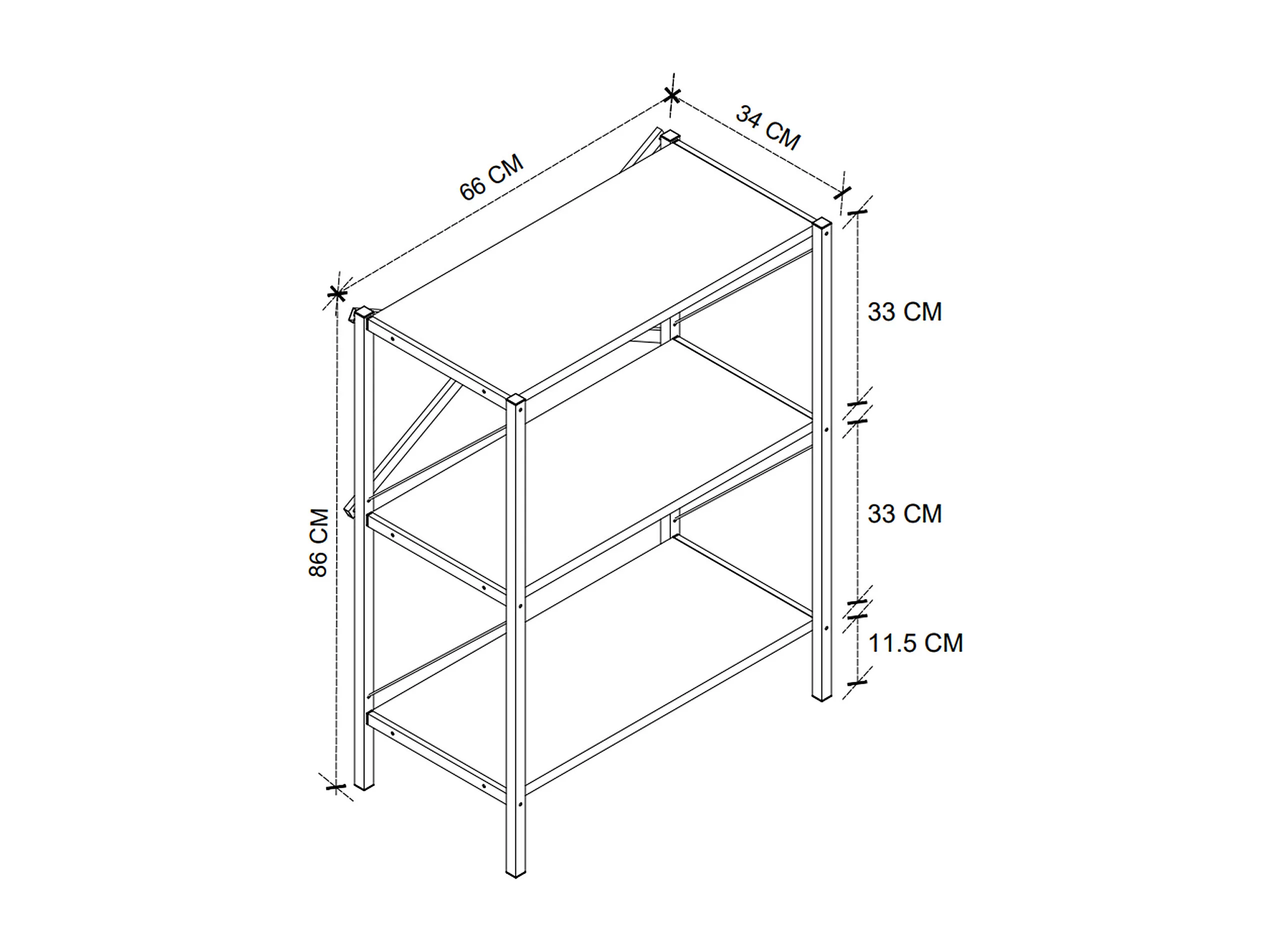 Estanteria De Metal 3 Niveles 85X66X34 Safir