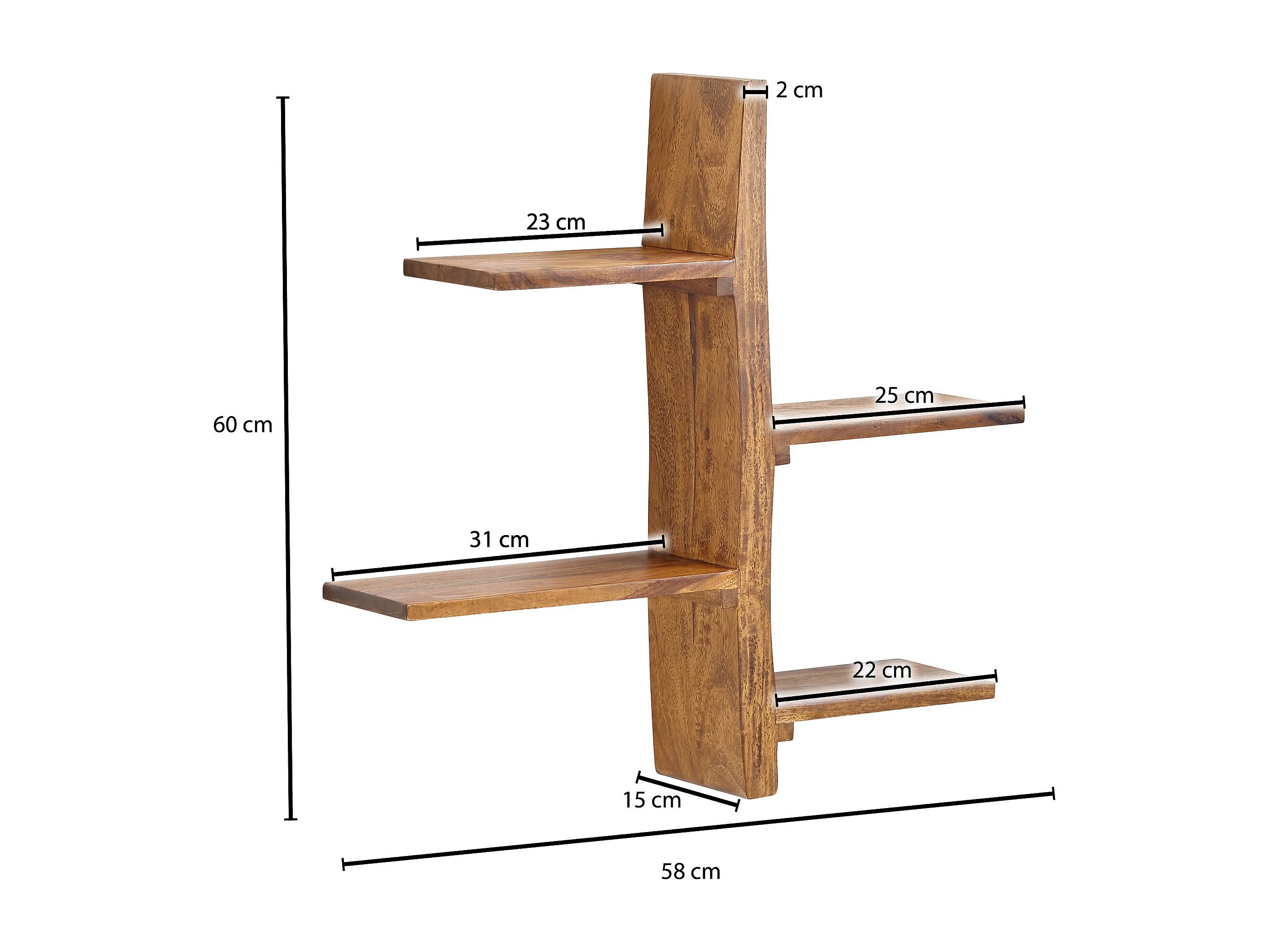 Estantería de Pared 58x60x15 cm Moderna Madera Maciza de Sheesham | Estante Colgante de Flotación