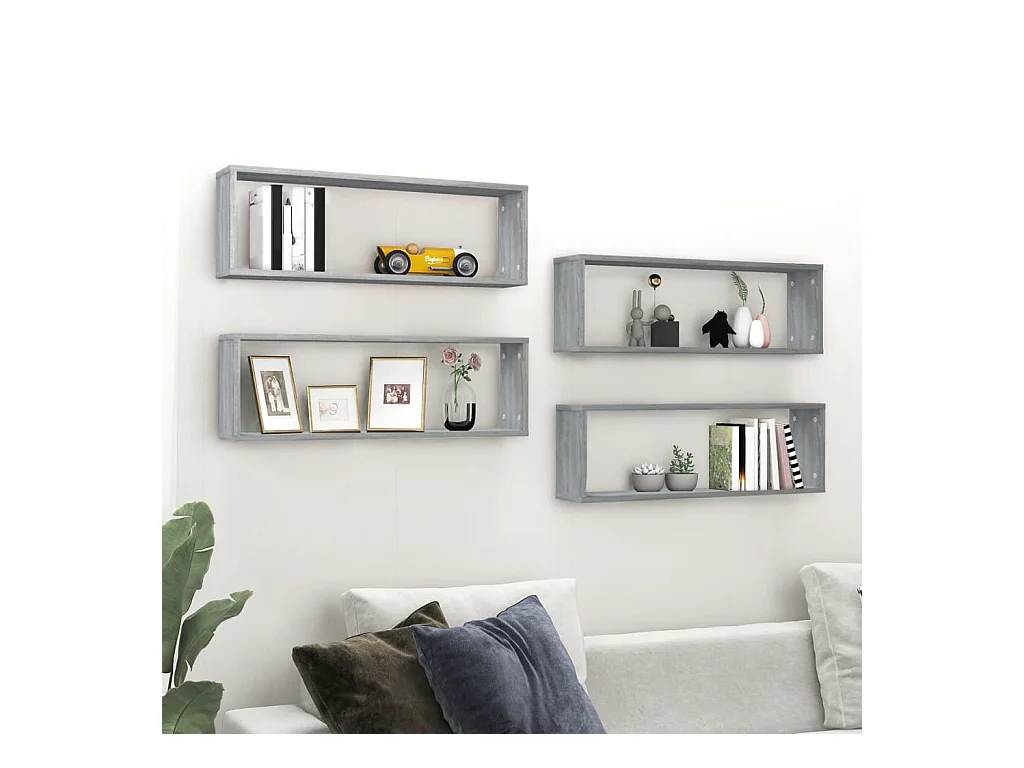 Estantería de pared cúbica de 4 piezas Sonoma gris 80x15x26,5 cm