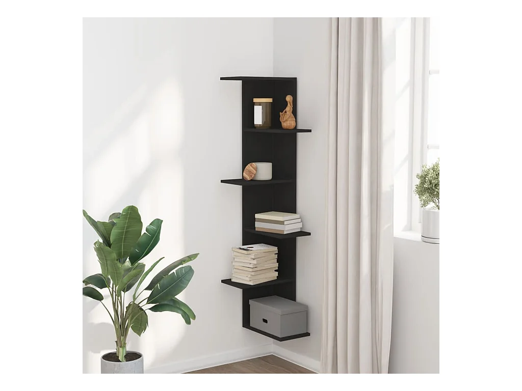 Estantería de pared de esquina madera negra 36,5x36,5x140 cm