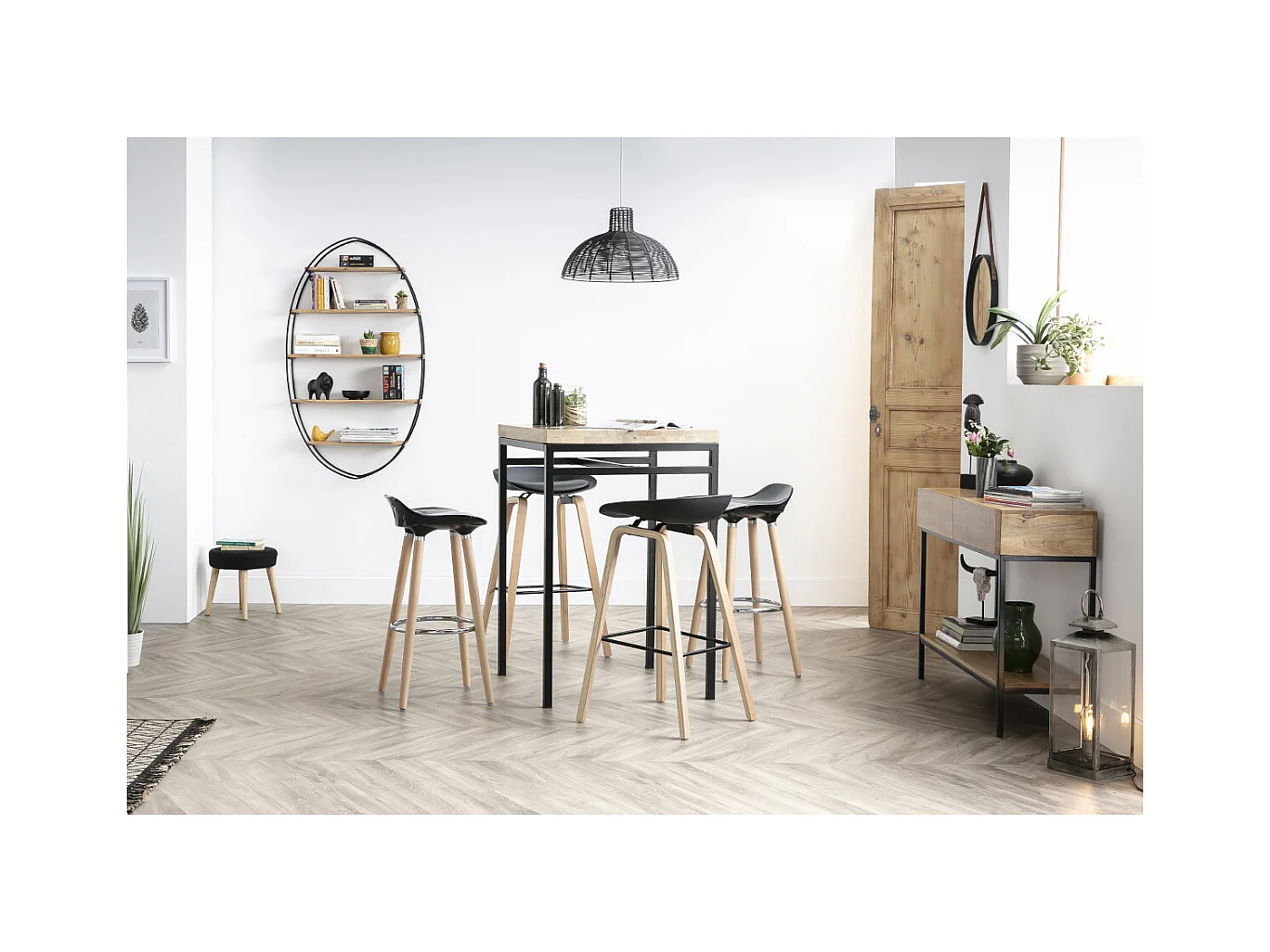Estantería de pared Arch, librería natural y negra.