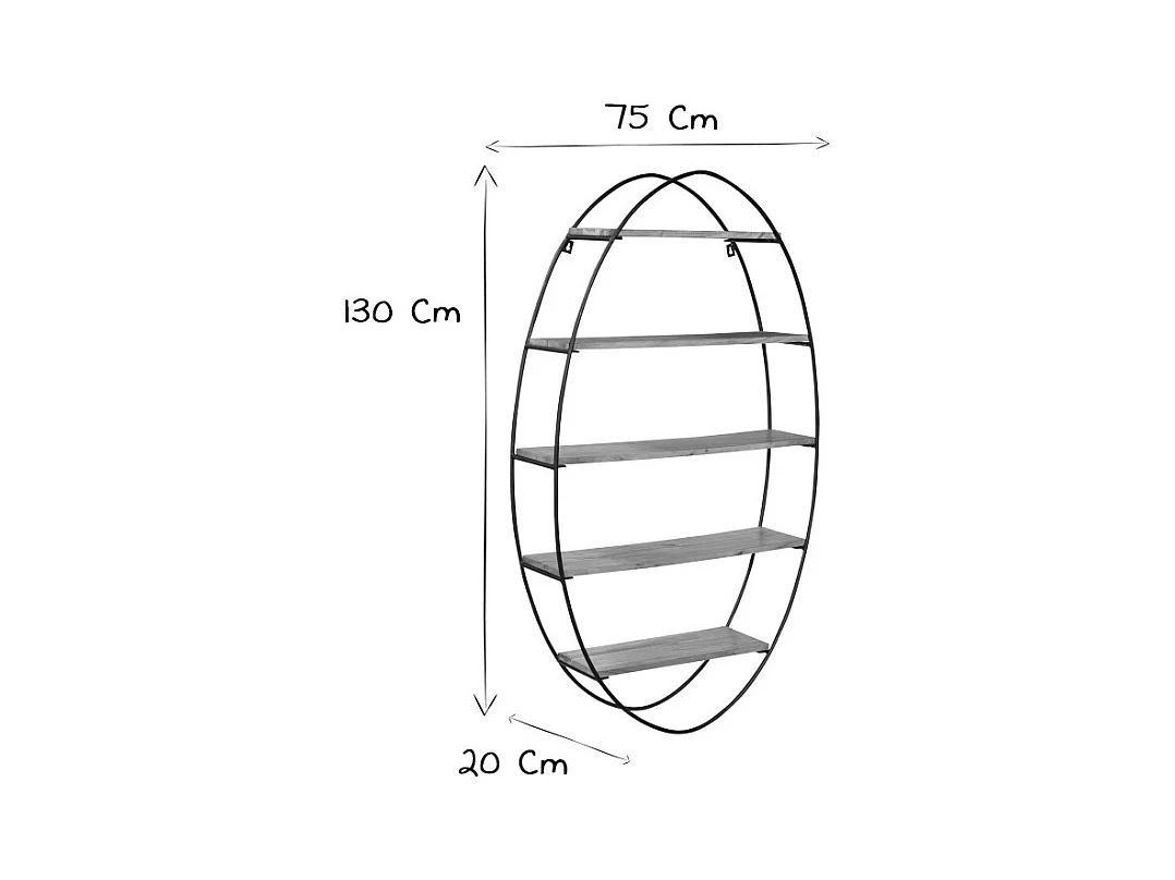 Estantería de pared oval en acacia y metal A130 cm HANG