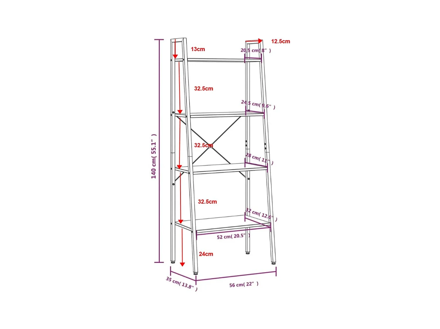 Estantería de pie 4 baldas marrón claro y negro 56x35x140 cm