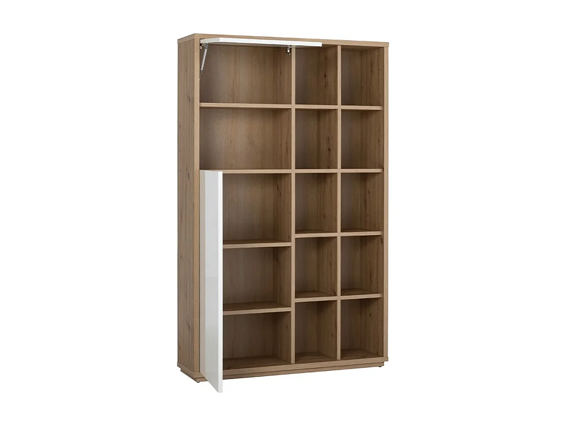 Estantería de salón moderna madera de roble 2 puertas en blanco brillante Sharon
