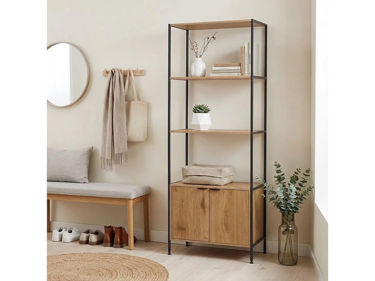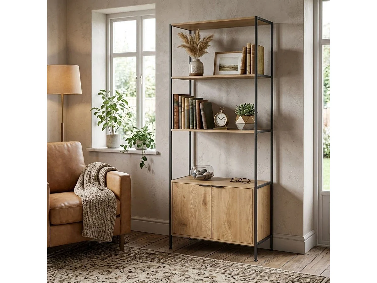 Estantería Ébano dos estantes con armario doble negro/natural 177x68x35 cm