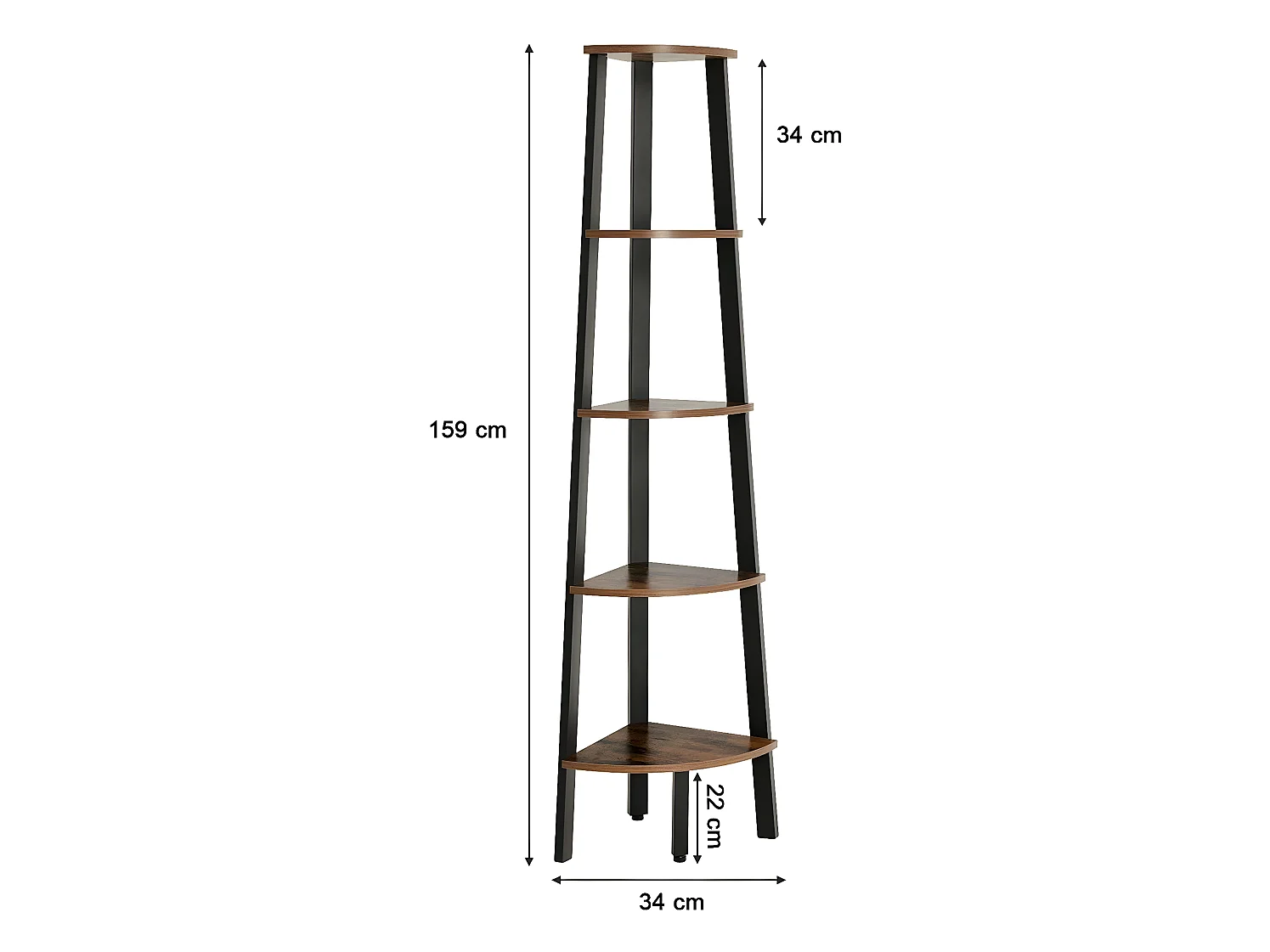 Estantería de esquina de 5 niveles negra 45,5x31,5x180 cm ES497703