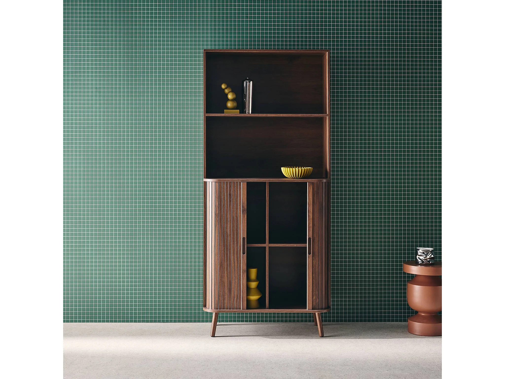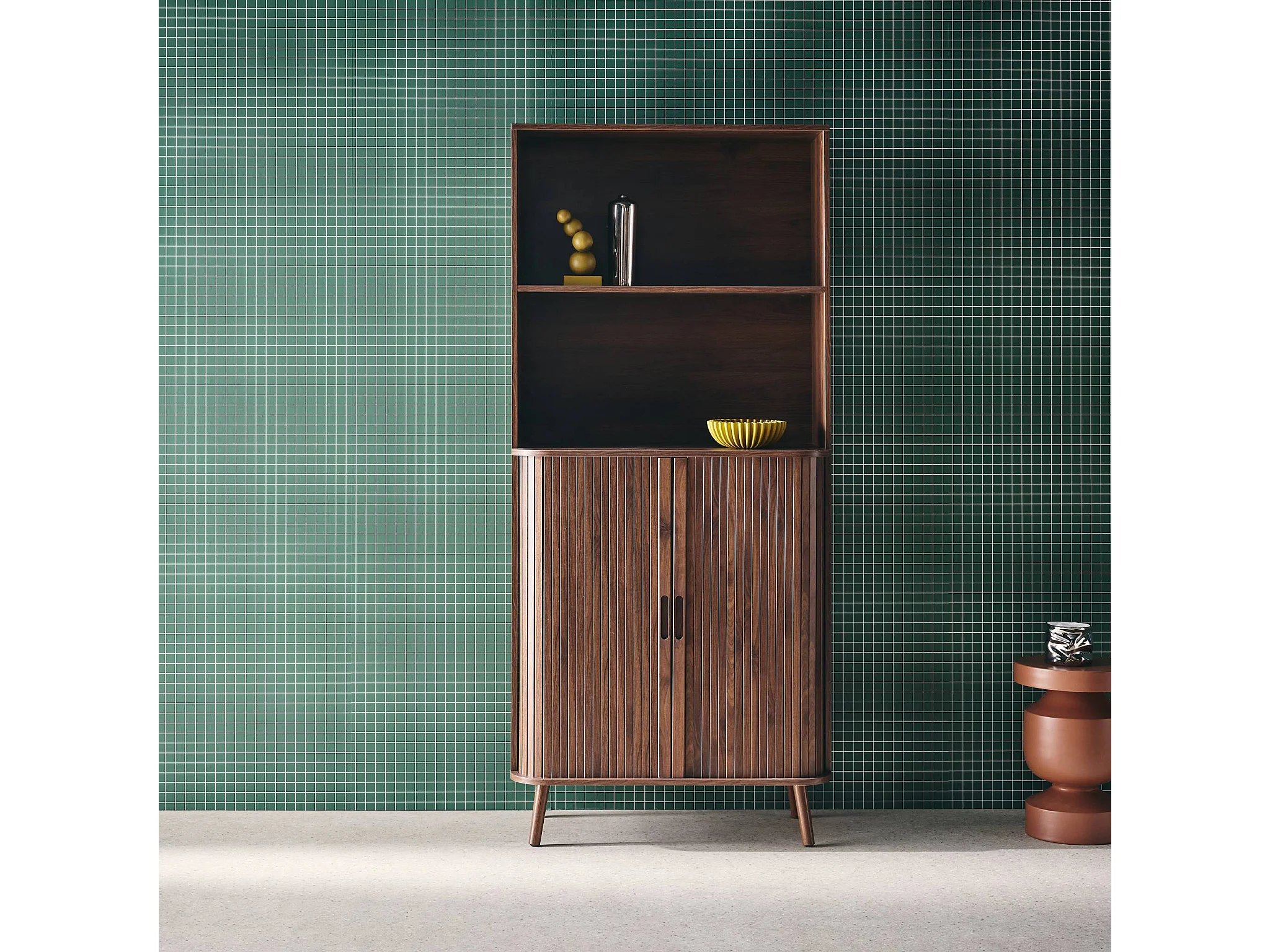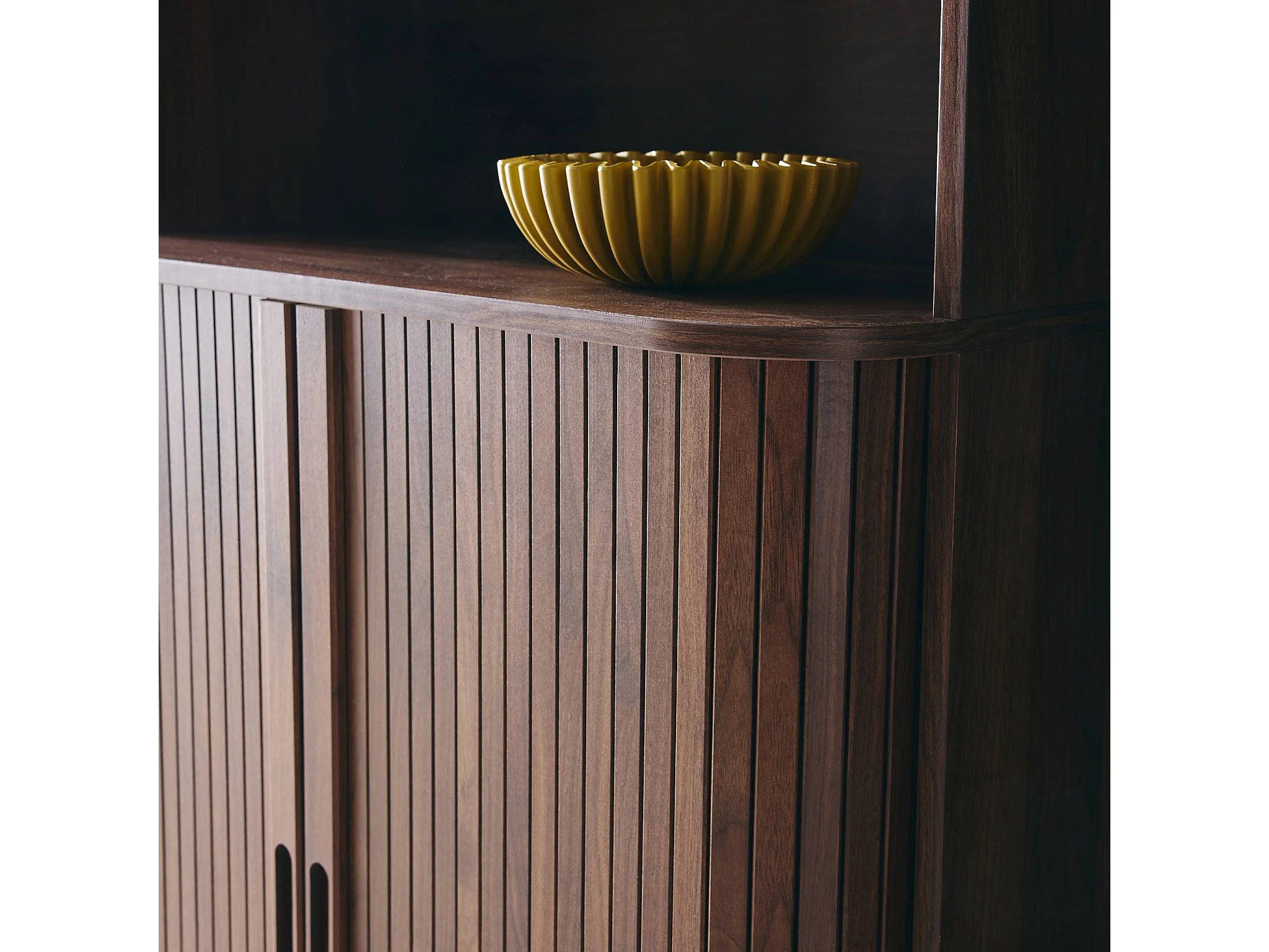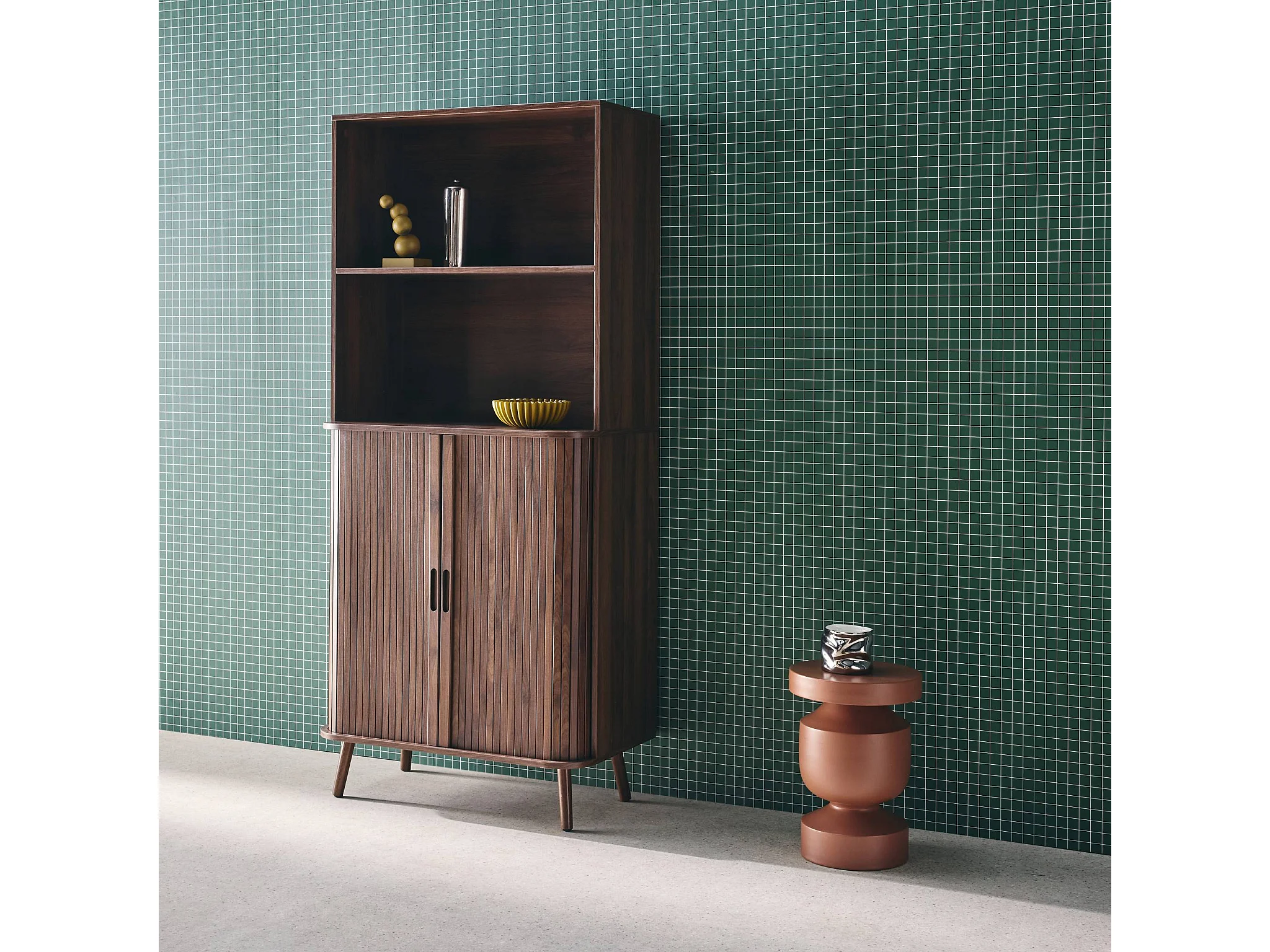 Estantería escandinavo, 2 puertas correderas, 4 niveles nogal