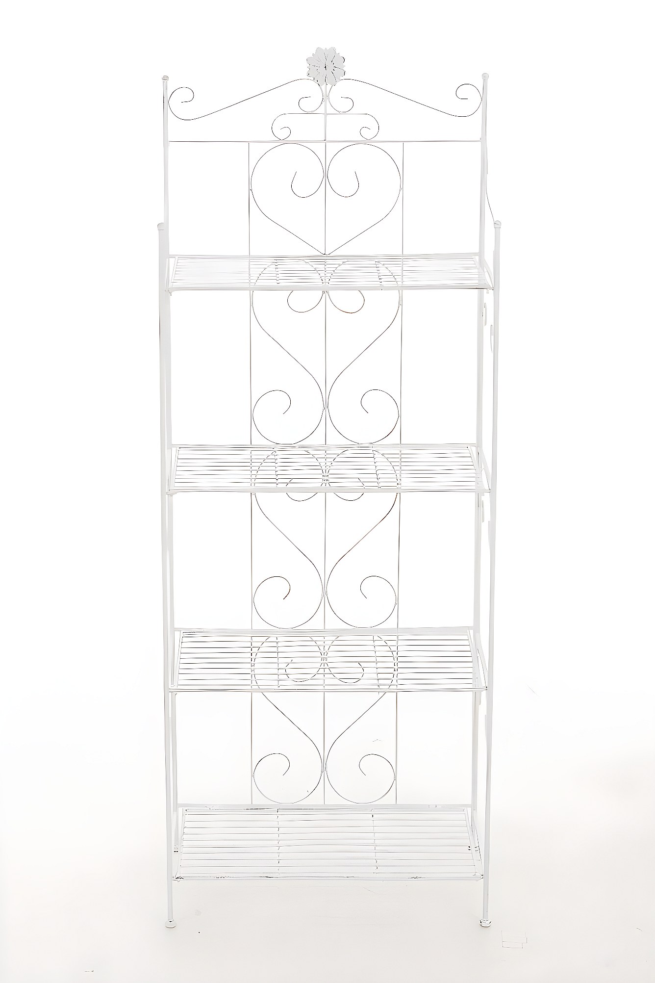 Estante de pie soporte de flores, librería 4 niveles metal blanco antiguo M10_000297