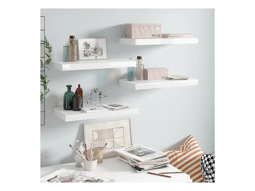 Estantería flotante de pared 4 piezas Blanco Brillo 50x23x3,8 cm MDF