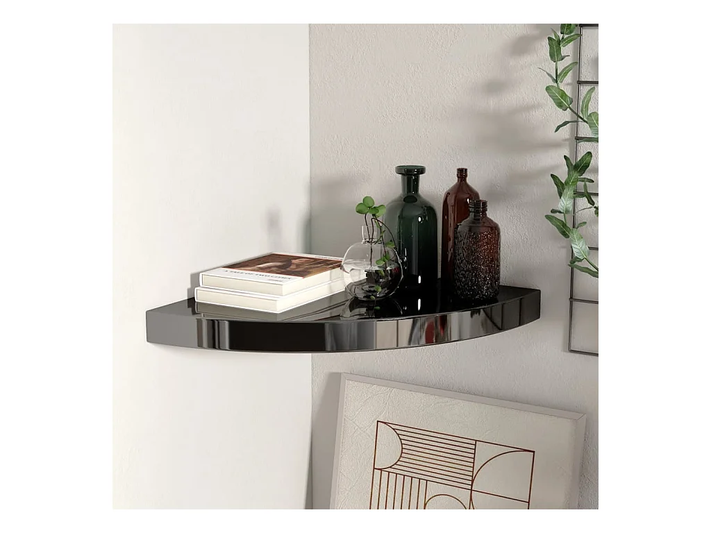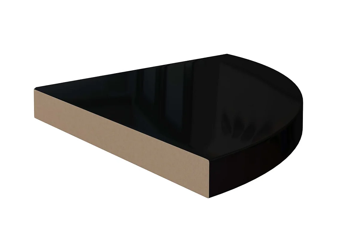 323889 Estante flotante de esquina negro alto brillo 25x25x3,8 cm MDF