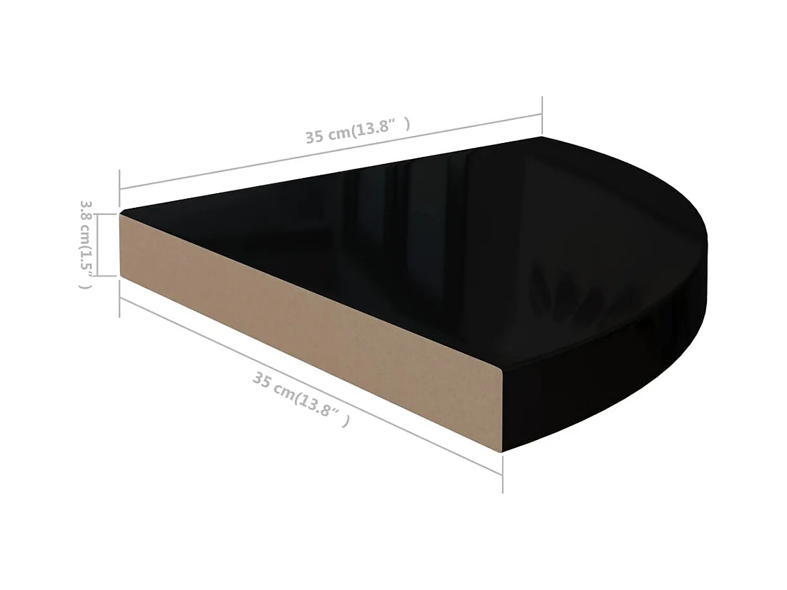 Estantería flotante esquinera negro brillante 35x35x3,8 cm MDF