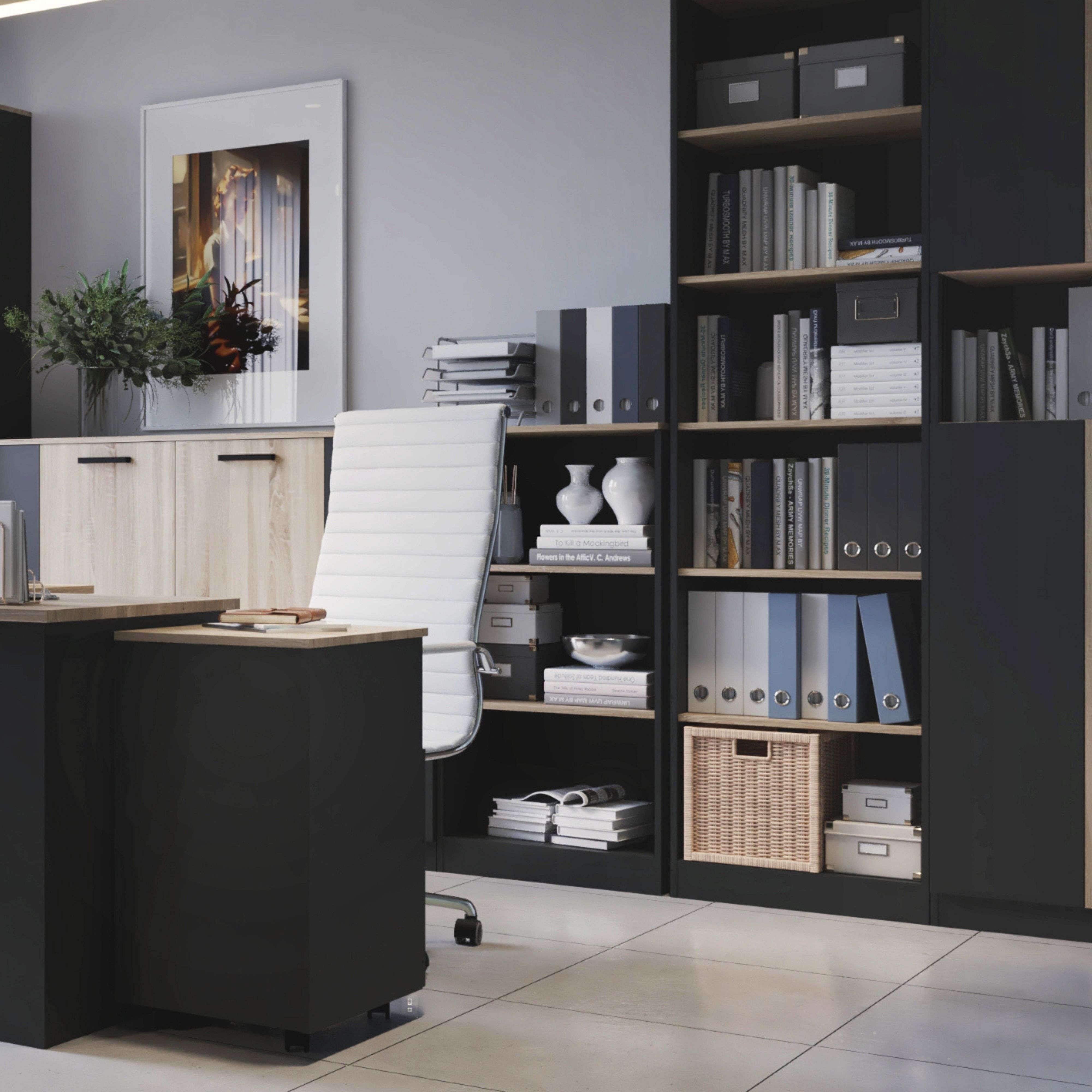 Estantería Frogi Oficina 3 Estantes Roble Sonoma y Gris Antracita 60x116x40 cm