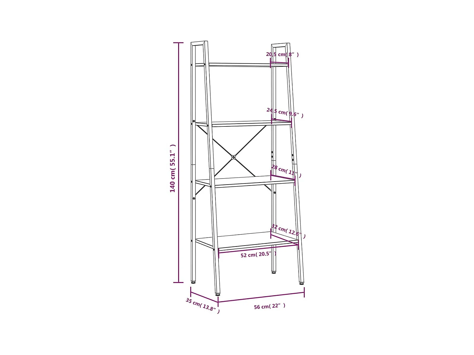 Estantería independiente de 4 niveles Marrón claro y negro 56x35x140 cm