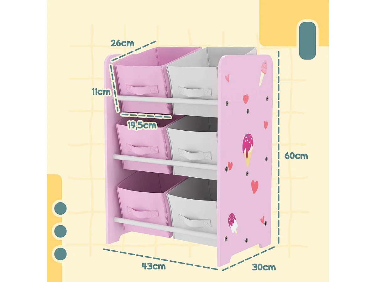 Estantería infantil Yoyó Aiyaplay 6 cajas +3A rosa 60x43x30 cm