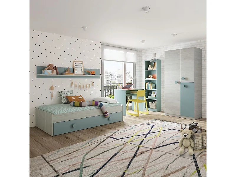 Pack 2 estantes de madera maciza flotante tono verde 100cm - DUC - DECOWOOD