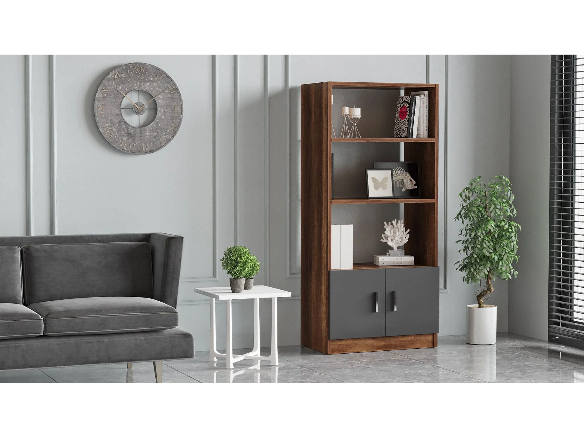 Librería moderna – 90 x 180 x 20 cm – Nogal y Antracita – MDF recubierto de melamina
