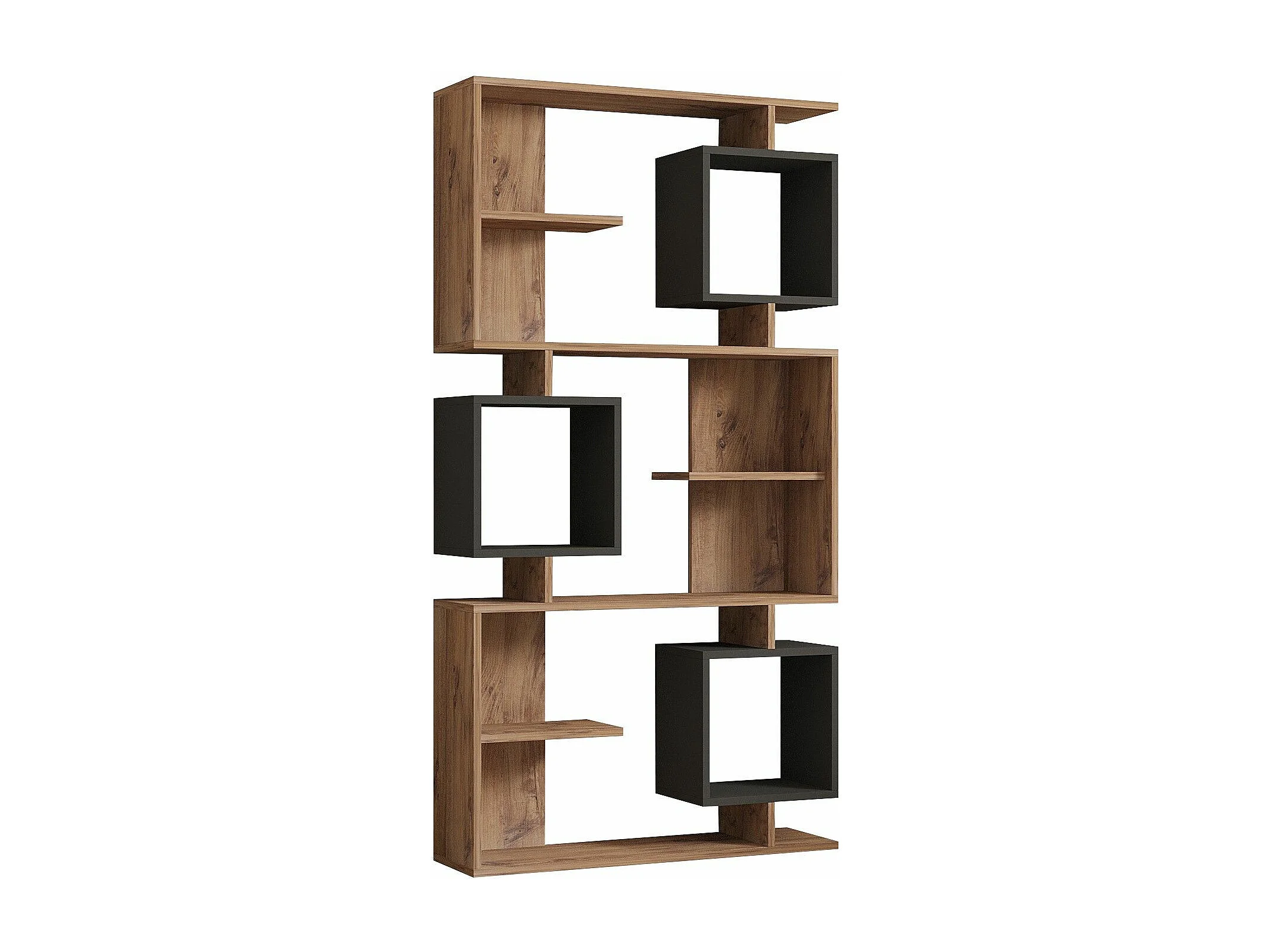 Librería moderna – 90 x 180 x 20 cm – Nogal y Antracita – MDF recubierto de melamina