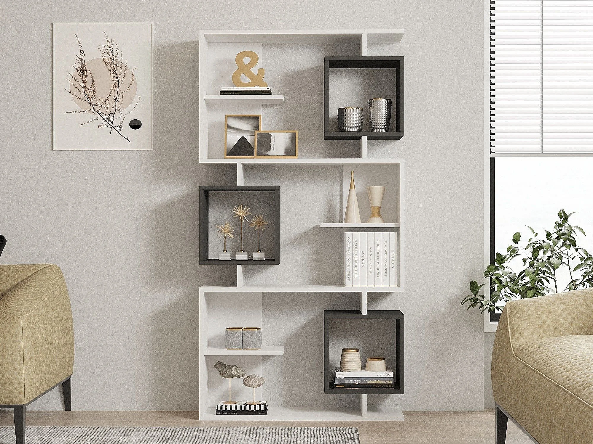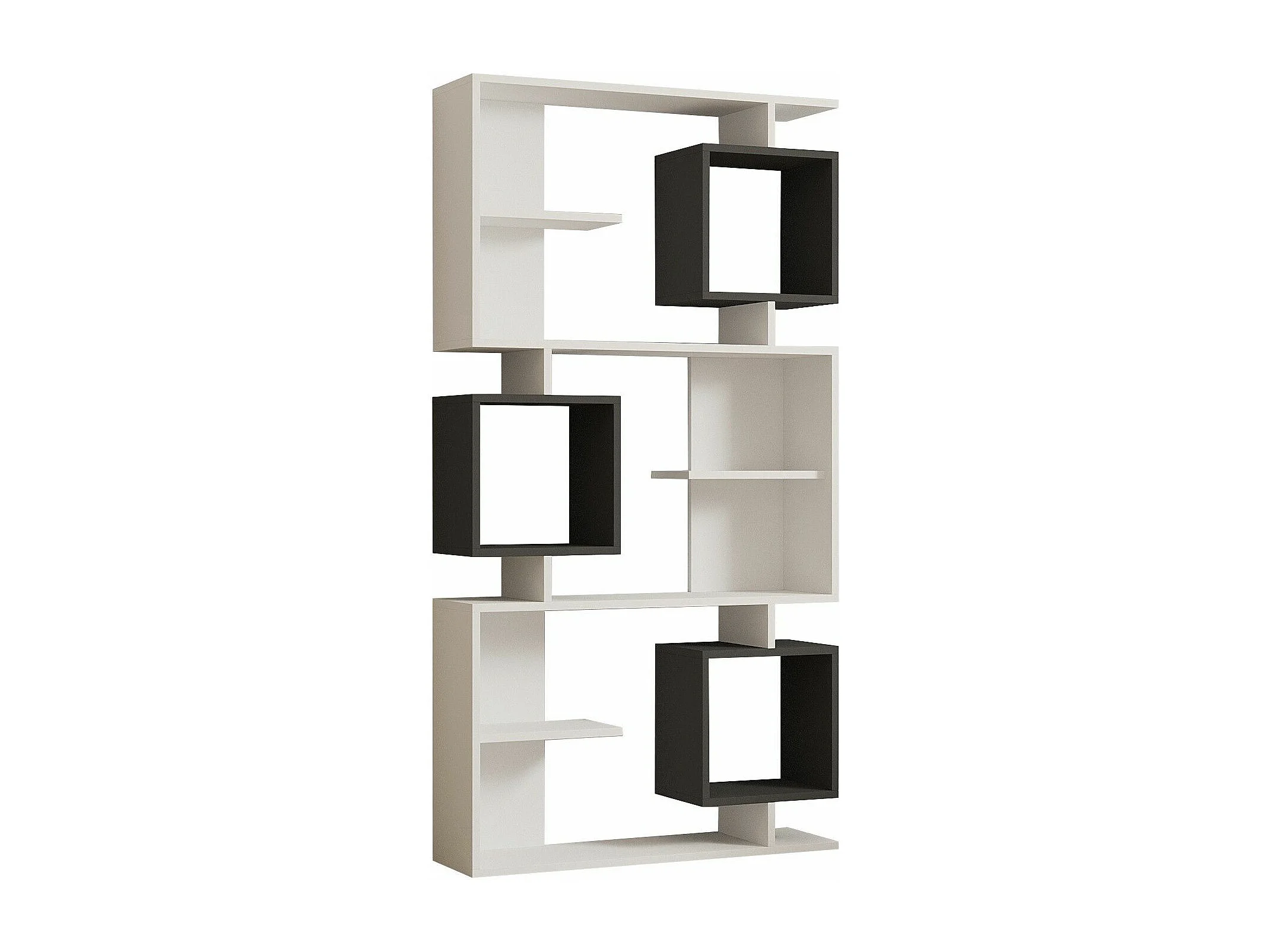 Estantería Kailua 2158, Abierto, Aglomerado laminado, 172x90x25cm, Blanco|Antracita