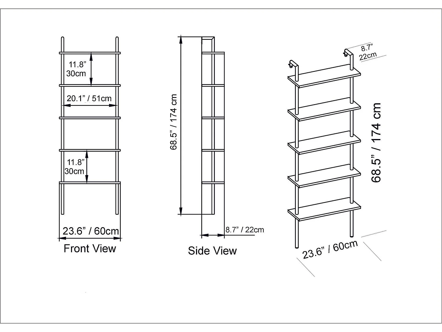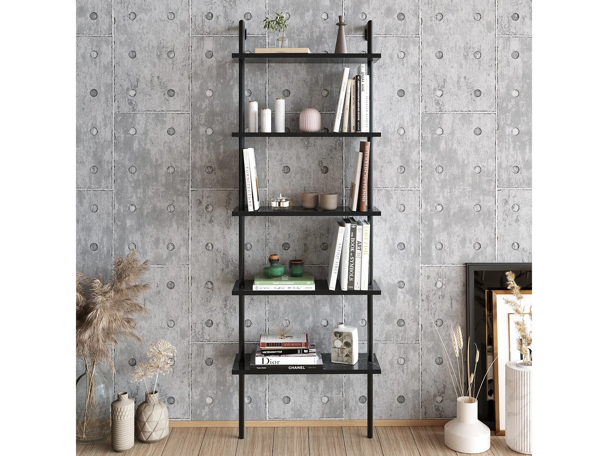 Estantería Kailua 649, Abierta sin pared trasera, Metal|Aglomerado laminado, 174x60x22cm