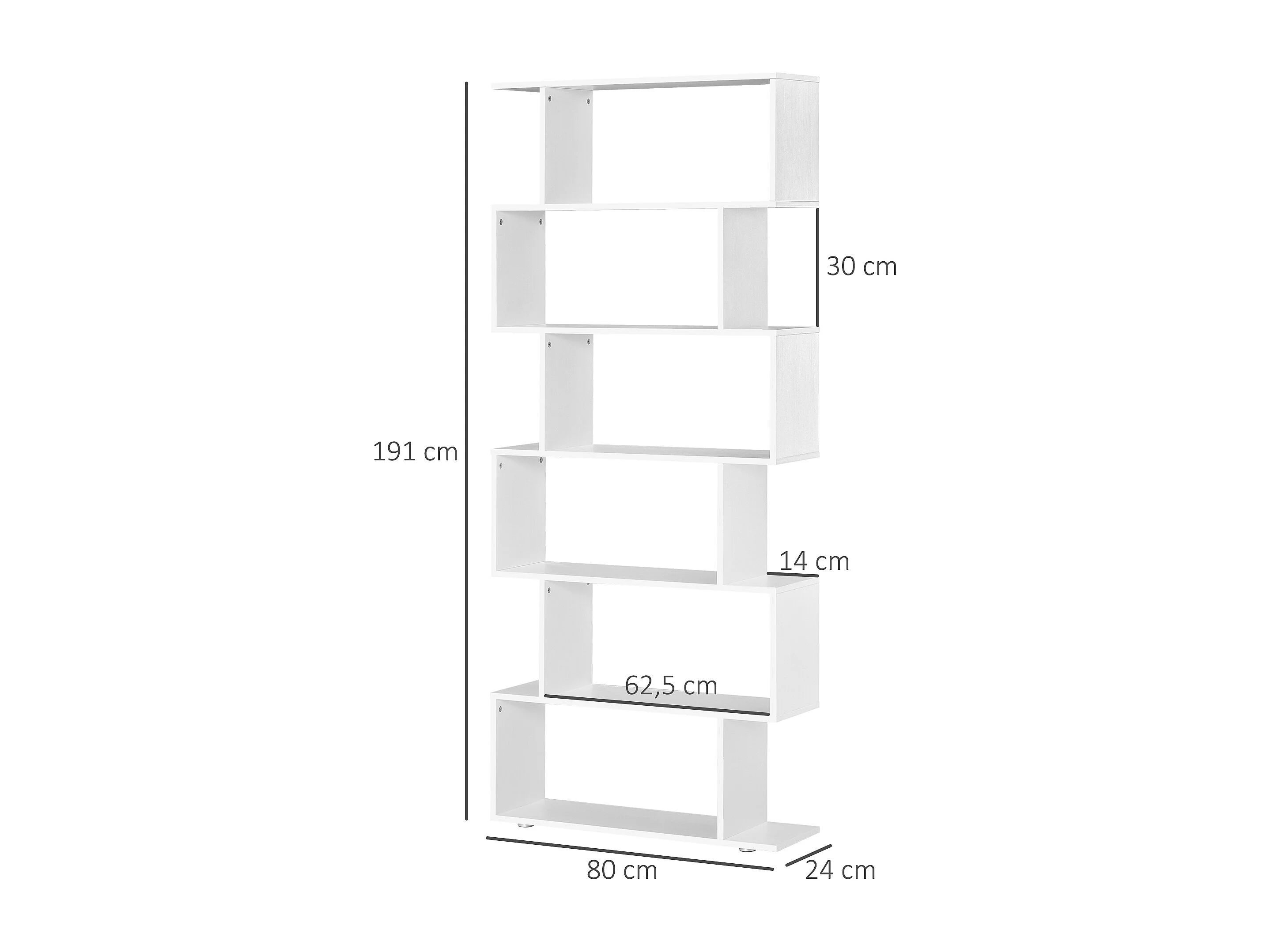 Gran biblioteca angular moderna de 7 estantes con marco de metal para salón, casa y oficina (blanco)