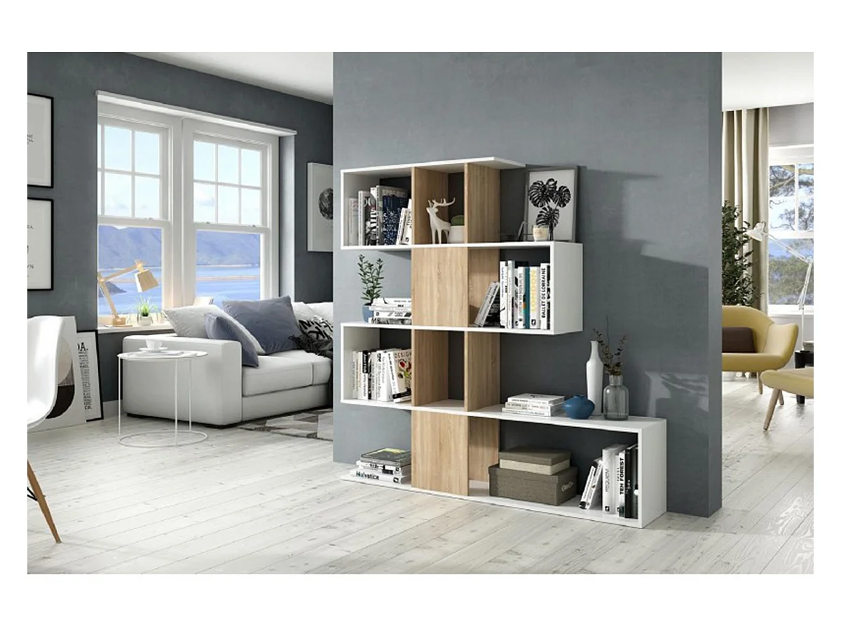Estantería Librería Moderna con Acabado en Blanco Artik y Roble Canadian - Dim: 145 cm (Alto) x 145 cm (Ancho) x 29 cm (Fondo)