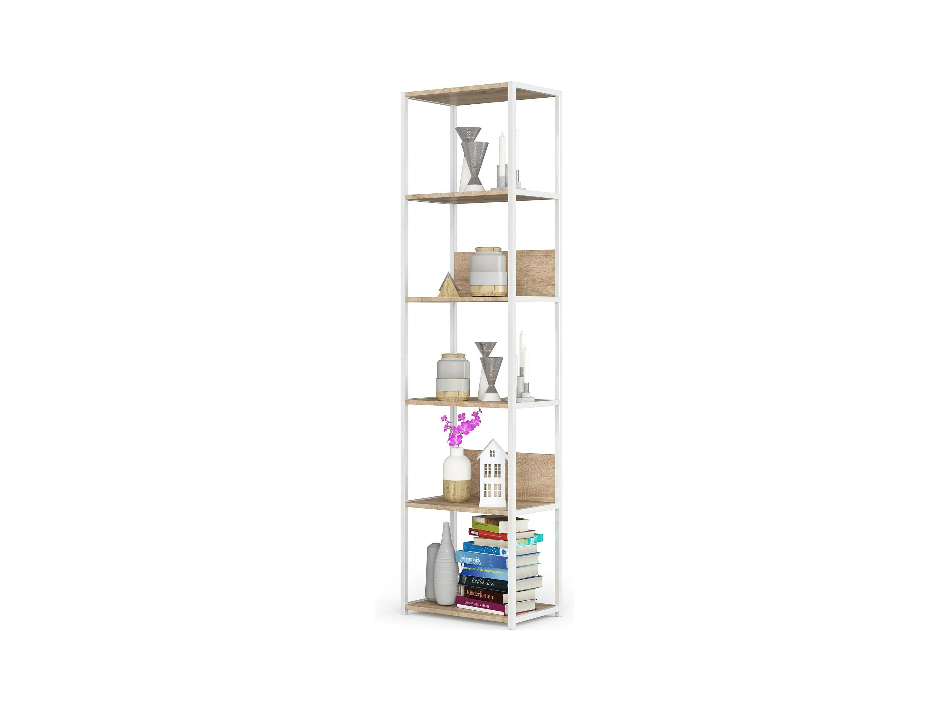 Estantería loft 50 cm AKORD metálica Blanco con 6 estantes en Roble Sonoma 50x32x191 cm
