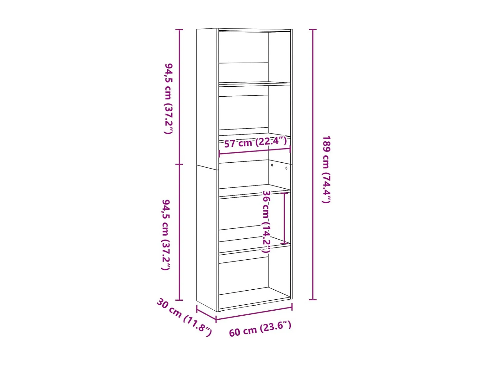 Biblioteca Estantería - divisor madera ingeniería roble ahumado 60x30x103 cm ES66635