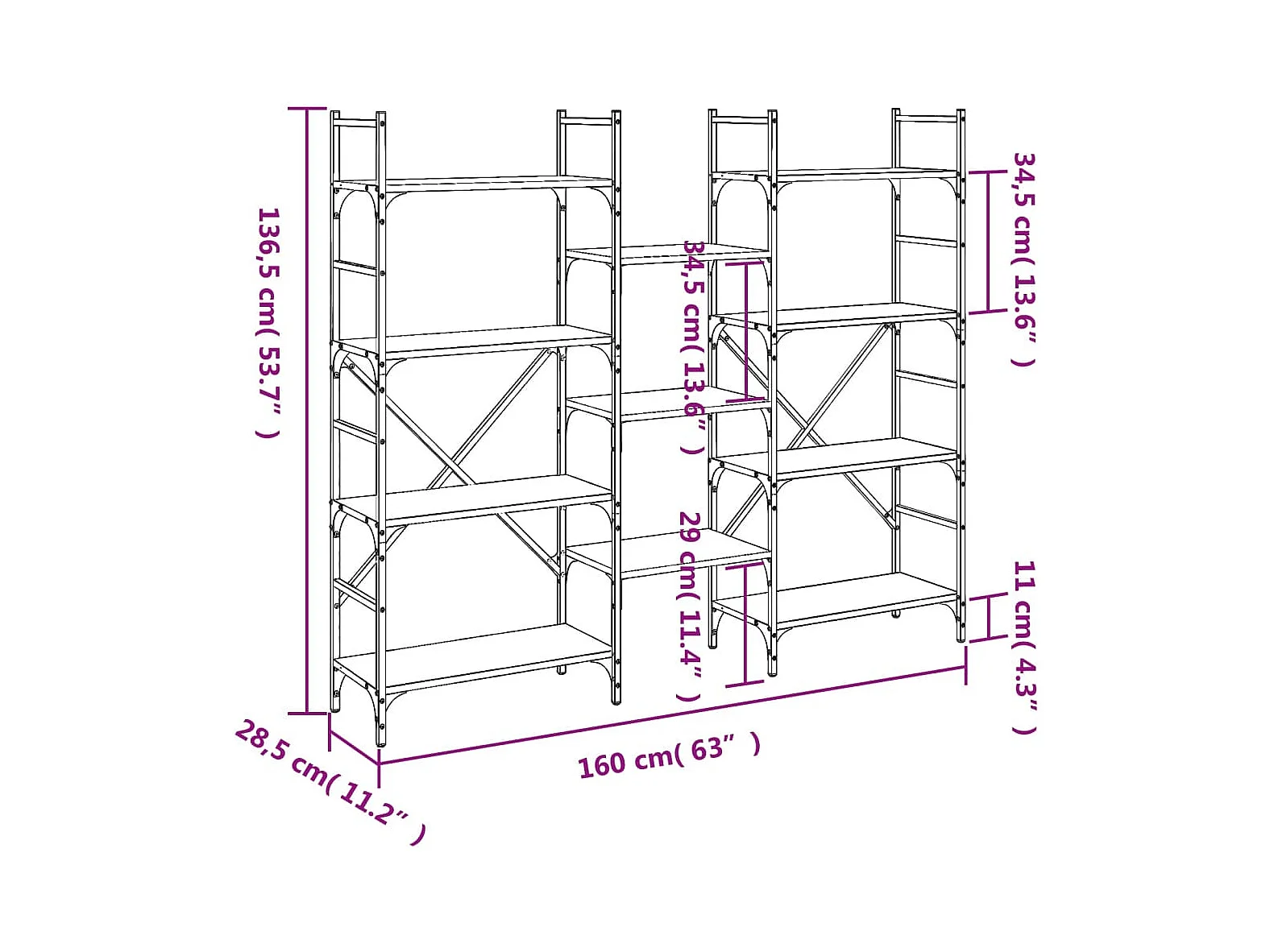 Estantería madera ingeniería y metal gris Sonoma 79x30x180 cm