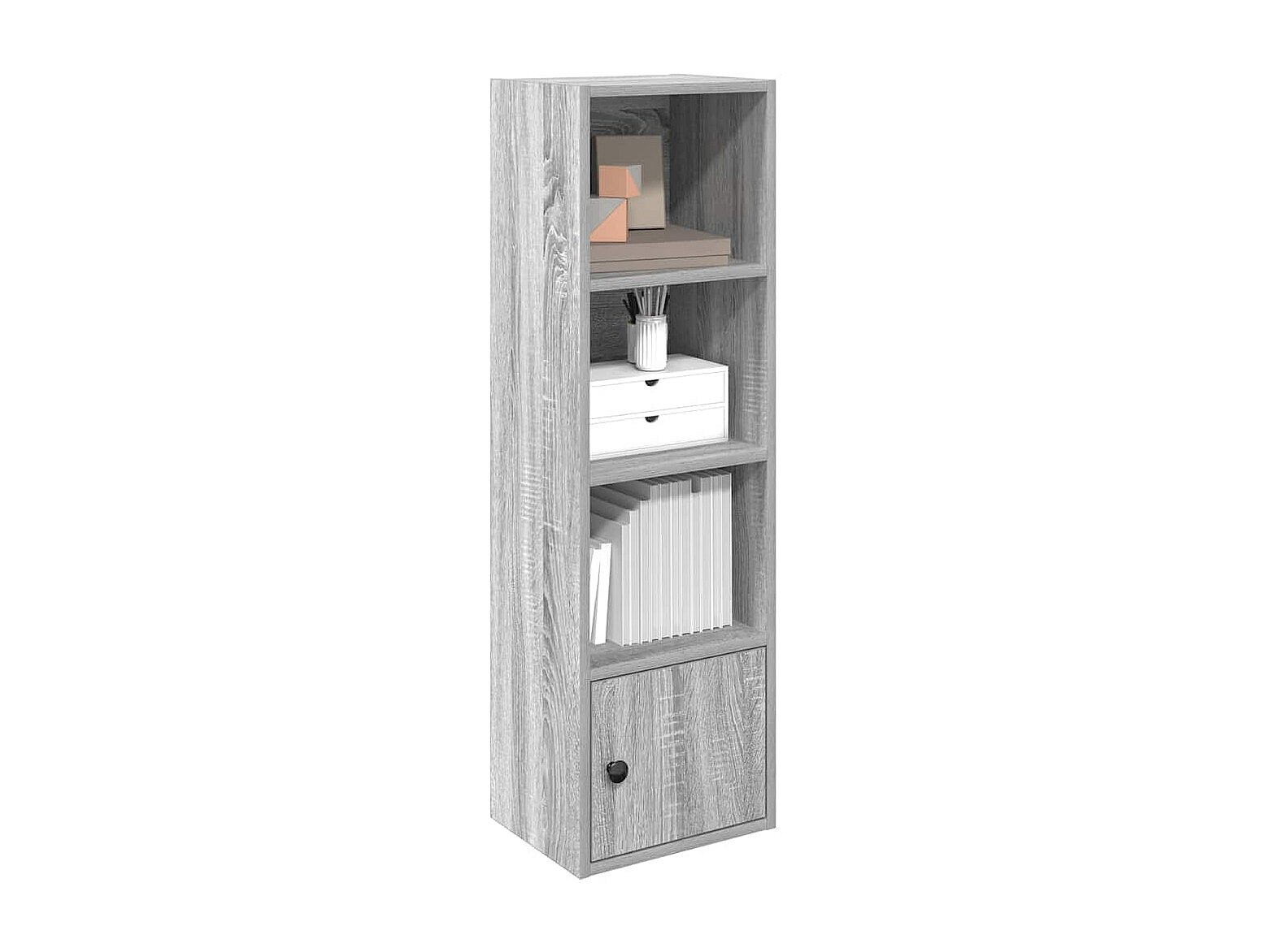 Estantería de madera de ingeniería gris hormigón 40x24x102 cm