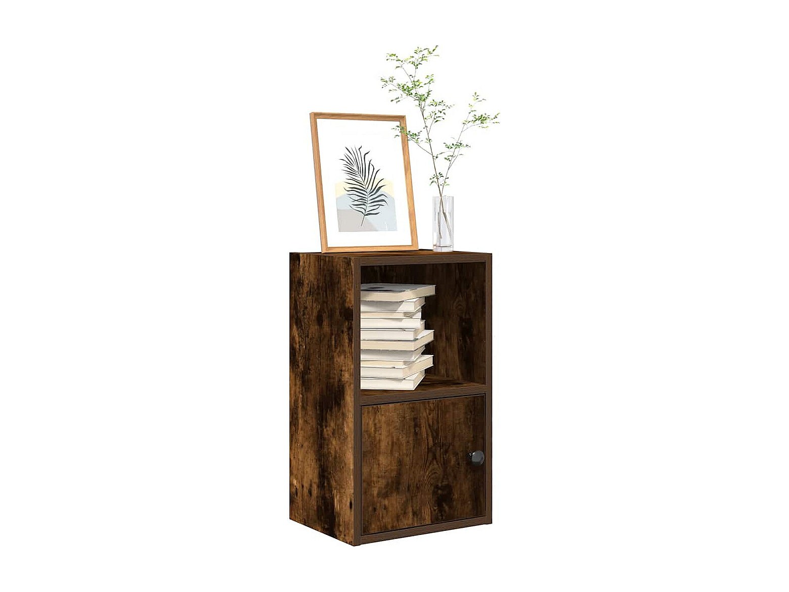 Clicnbuy le ofrece : Esta estantería ofrece la solución perfecta para organizar sus libros y al mismo tiempo constituye un complemento elegante y funcional para la decoración de su hogar. Material estable y duradero: La madera de ingeniería es un material duradero y estable con una superficie lisa que es resistente a la humedad, la deformación y la rotura, lo que la convierte en una opción fiable para una variedad de proyectos.Amplio espacio de almacenamiento: este gabinete de almacenamiento tiene un estante y un gabinete con puerta, lo que brinda un amplio espacio para mantener su colección de libros, revistas y documentos en buen orden.Instalación de puerta flexible: La puerta del gabinete se puede colocar a la izquierda o a la derecha, según sus hábitos personales y conveniencia.Diversos usos: Esta estantería será ideal para tu colección de libros. También se puede utilizar como estantería de exposición para colecciones, fotos, premios, plantas en maceta, etc.Fácil de mantener: Gracias a su superficie lisa, el armario es fácil de limpiar con un paño húmedo y requiere menos mantenimiento. Advertencia:Para evitar que vuelque, este producto debe usarse con el dispositivo de fijación a la pared suministrado.